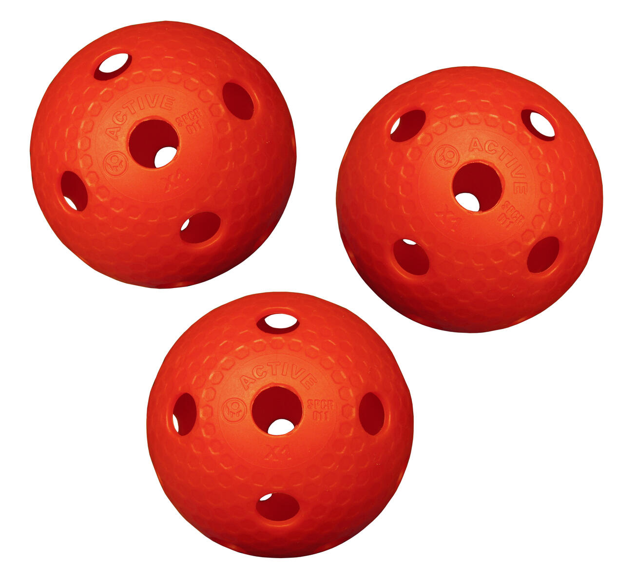 Klassisk slät innebandyboll. En slitstark boll som fungerar lika bra ute på asfalten som inne i idrottshallen. De klara färgerna gör att bollen syns bra. Mått: ø 7 cm. Av PE.