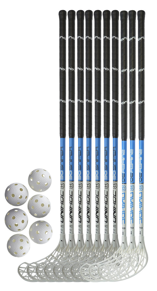 Innebandyset med kvalitetsklubbor från Unihoc. Setet innehåller 7 vänsterklubbor och 3 högerklubbor samt 6 IFF-godkända bollar. Skaftlängd: 98 cm. Flex 30.
