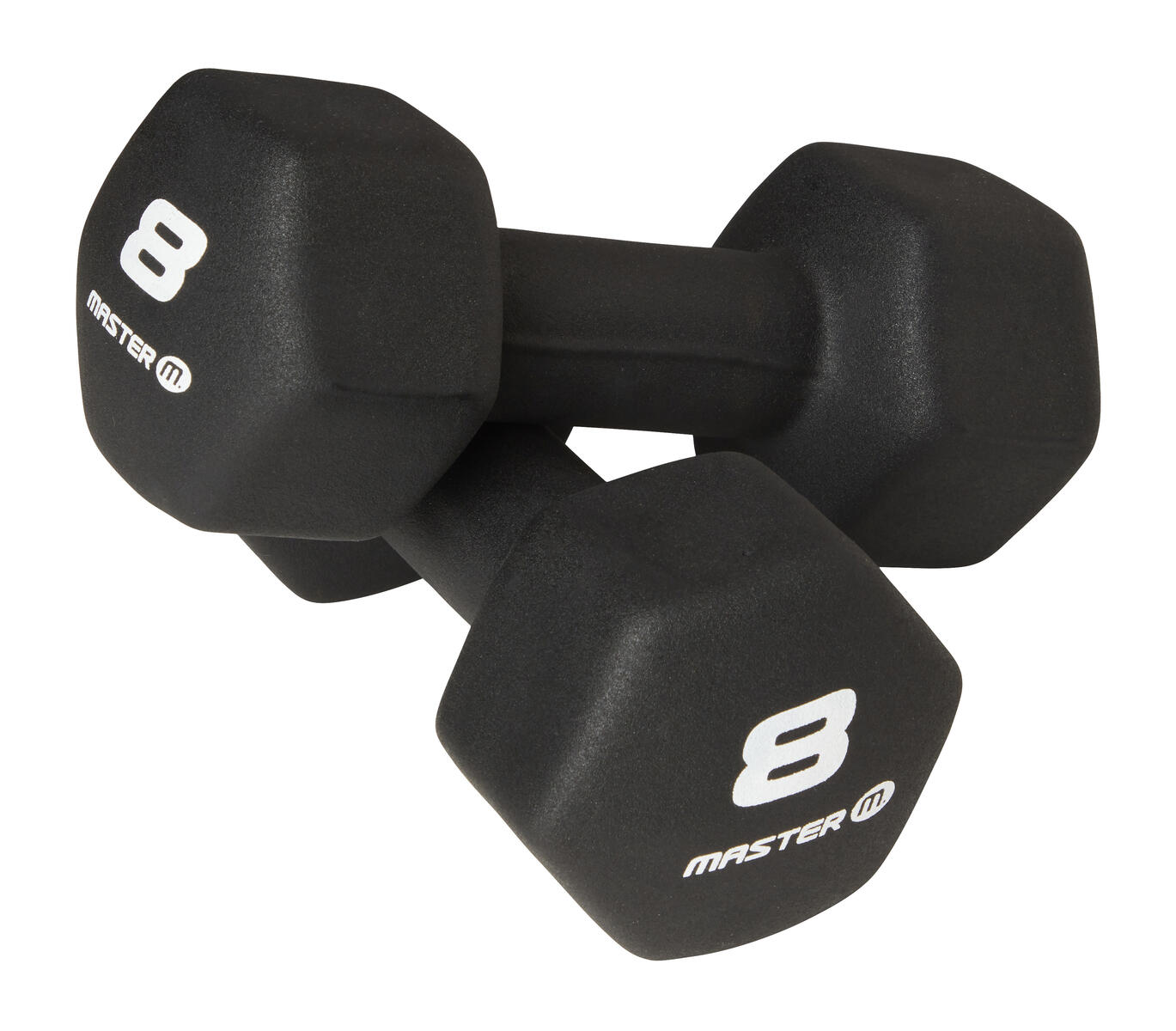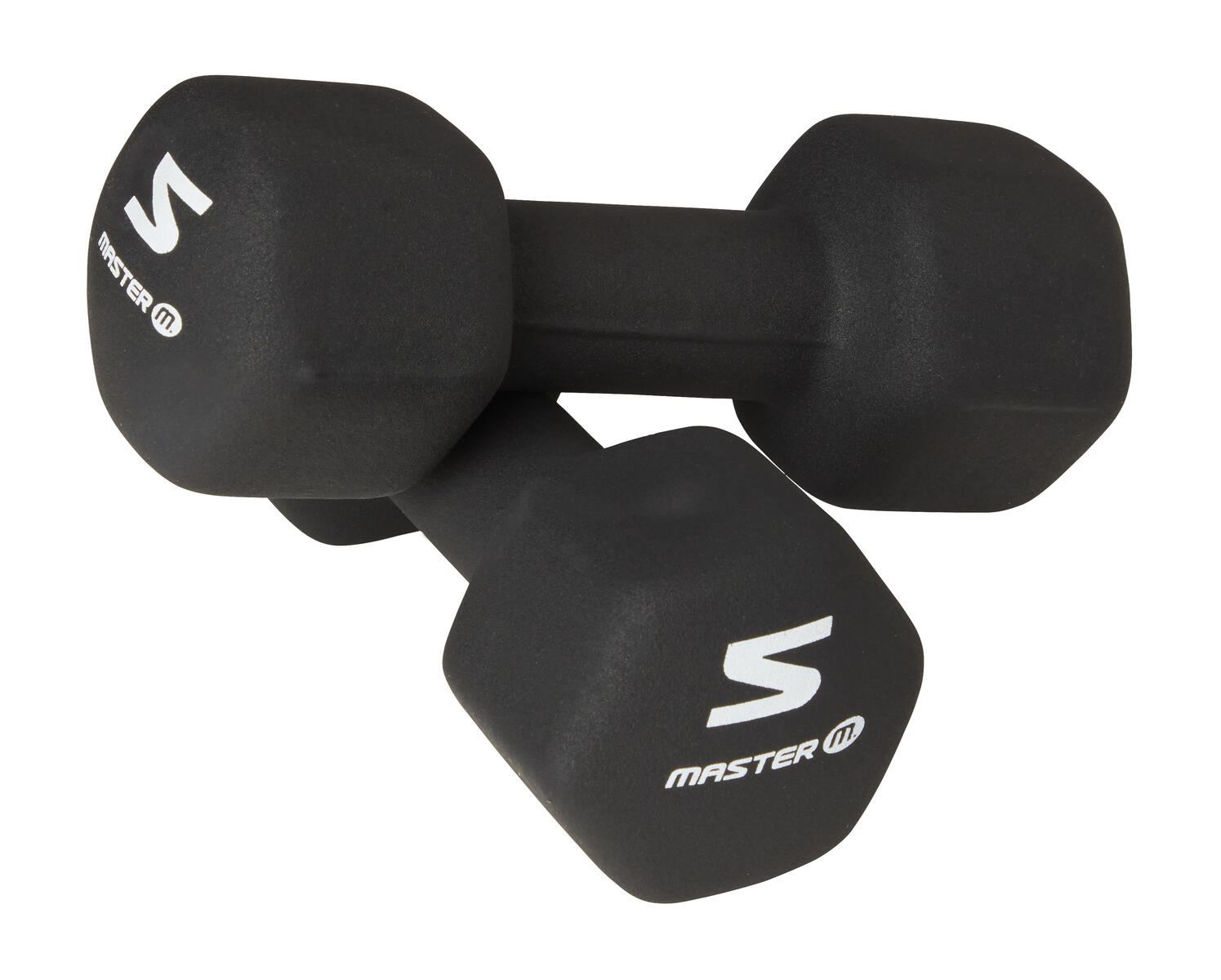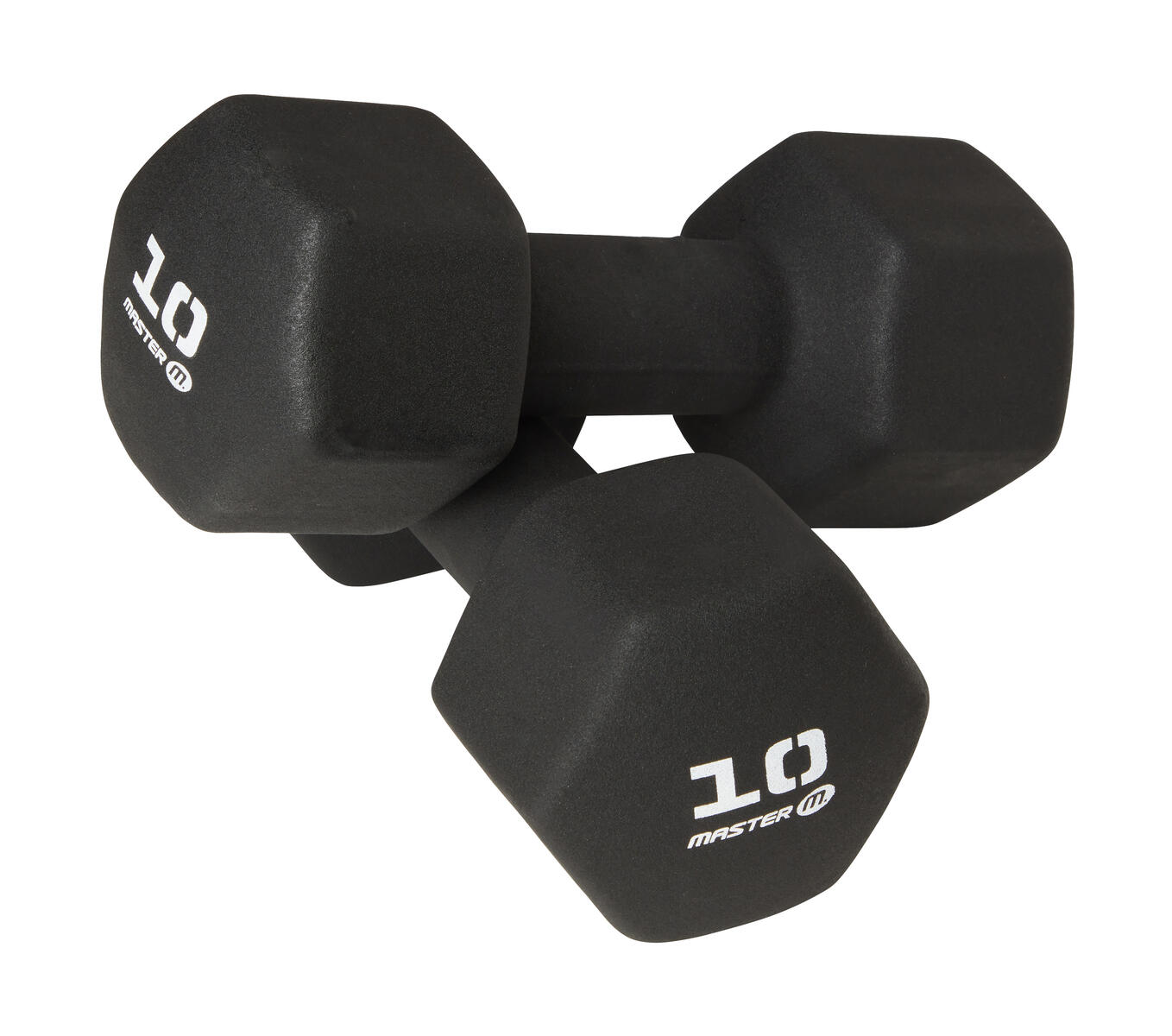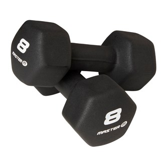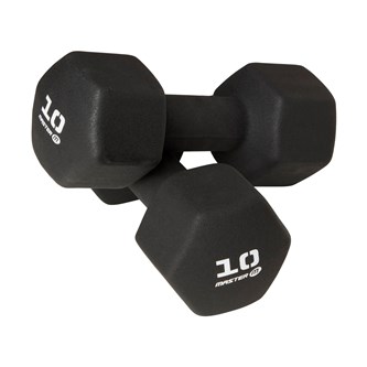 Stadiga järnhantlar som är helt klädda i bekväm neopren. Det gör hanteln mycket slitstark och ger ett fast och bra grepp under träningen. Hantelns form gör att den inte rullar i väg och passar därför även bra som exempelvis push-up bar. Setet innehåller par med vikterna 1-10 kg.