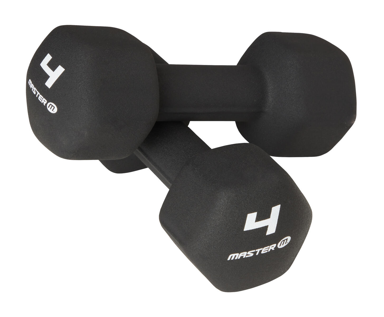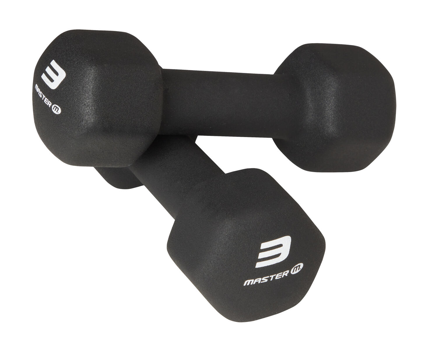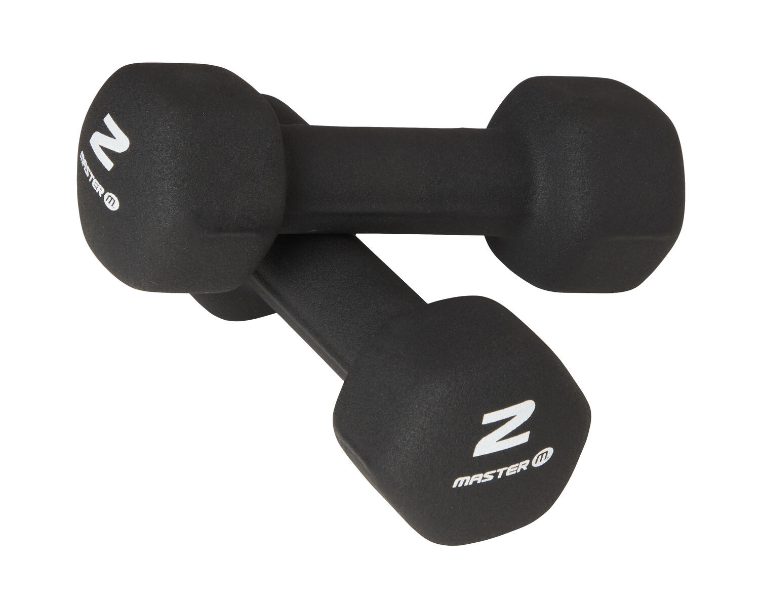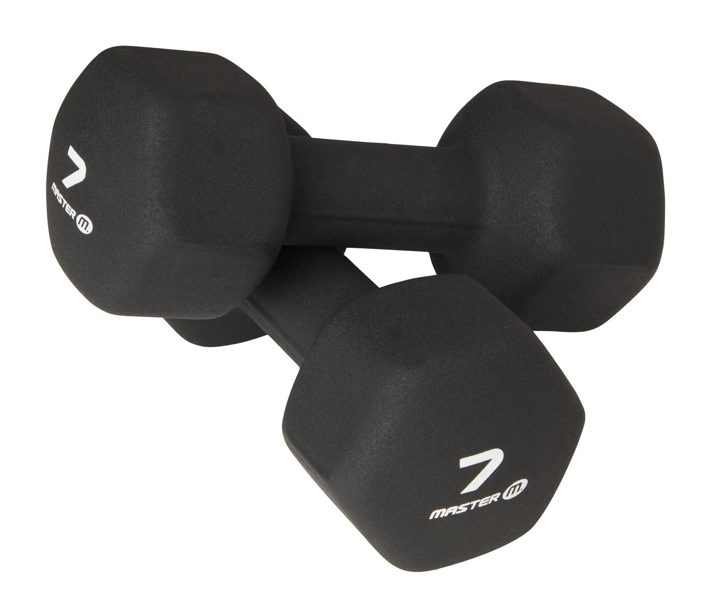 Stadiga järnhantlar som är helt klädda i bekväm neopren. Det gör hanteln mycket slitstark och ger ett fast och bra grepp under träningen. Hantelns form gör att den inte rullar i väg och passar därför även bra som exempelvis push-up bar. Setet innehåller par med vikterna 1-10 kg.