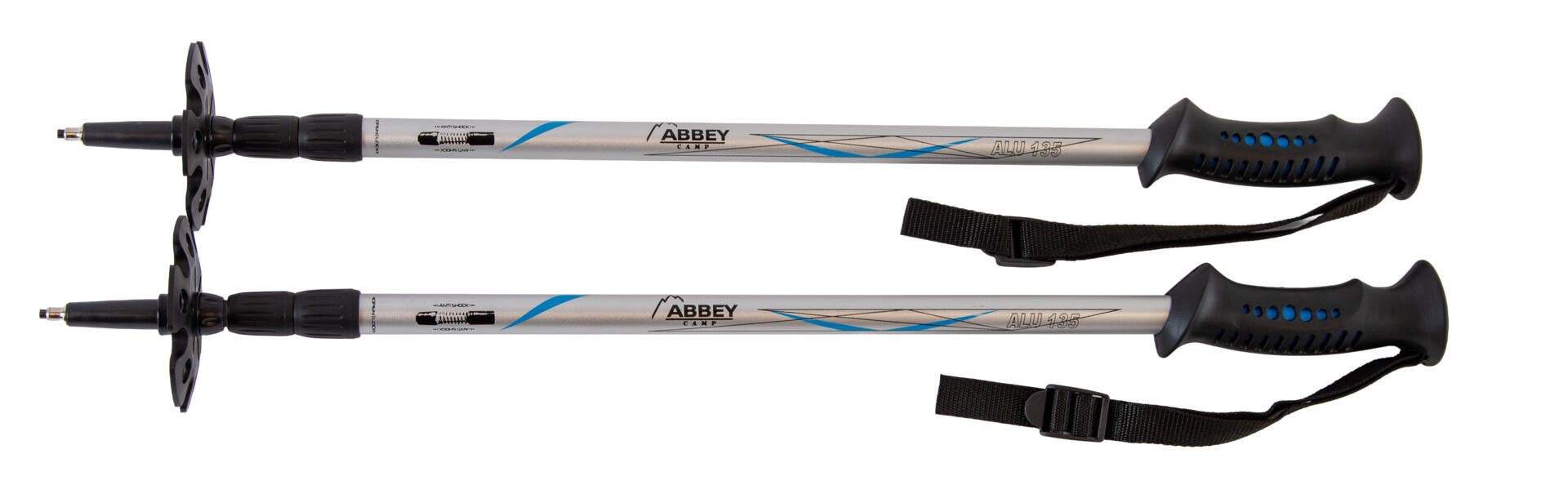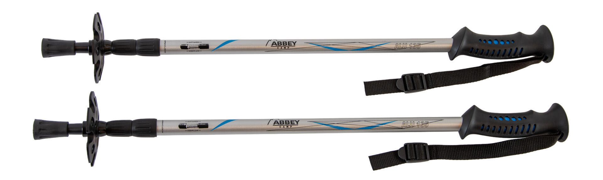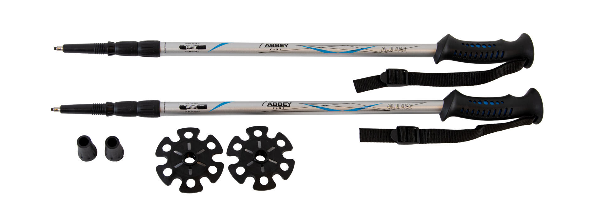 Med stavar blir promenaden effektivare och armar, axlar, bröst och ben tränas. Aluminiumstavarna är tredelade och har stötdämpning. Justerbar höjd och med en bra handledsrem som ger extra stöd. Gummihandtaget är mjukt och greppvänligt vilket ger ett stadigt och bekvämt grepp. Höjd 66-135 cm.