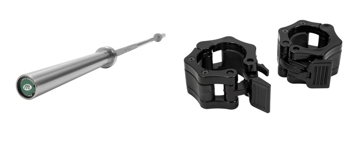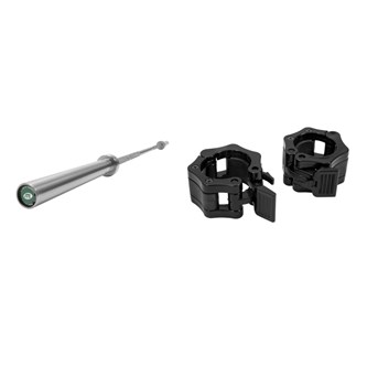 Ett komplett set med 1 skivstång, 2 st 1,25 kg, 2 st 2,5 kg, 2 st 5 kg-vikter och 2 st lås. Vikterna har olika färger. Längd på stången 130 cm. Total vikt på setet 20 kg.
