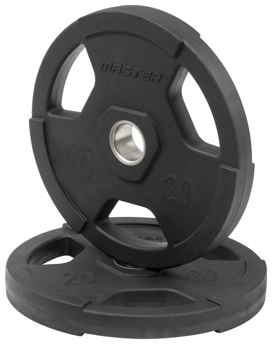 1 st/fp. Gummiklädd vikt med internationella mått, håldiameter 50,5 mm. Rostfri centrumring och handtagsgrepp. Vikt: 20 kg. Diameter: 395 mm. Tjocklek: 61 mm.