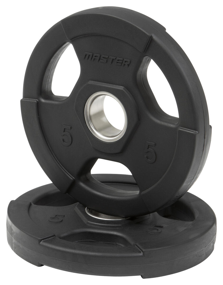 1 st/fp. Gummiklädd vikt med internationella mått, håldiameter 50,5 mm. Rostfri centrumring och handtagsgrepp. Vikt: 5 kg. Diameter: 280 mm. Tjocklek: 39 mm.