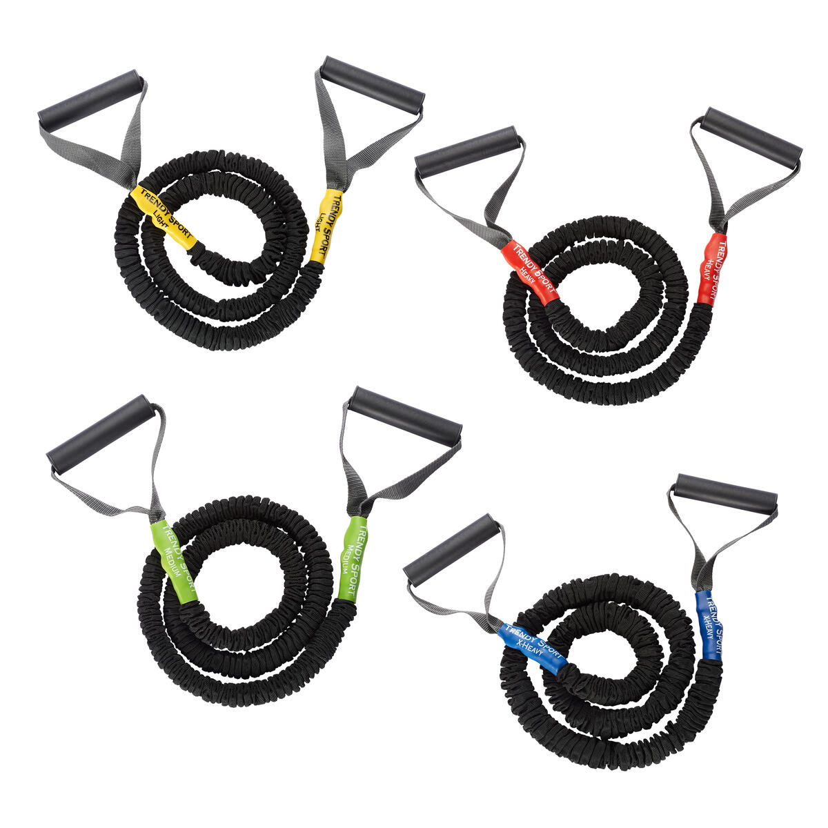 4 st/fp. Ett smidigt träningsband med handtag för mångsidig träning av olika muskelgrupper. Ett skyddande överdrag minskar slitaget och ökar livslängden. Viktmotstånd mellan 4,5 och 11,3 kg fördelat på fyra olika träningsband. Längd 1,3 m. Av latex.