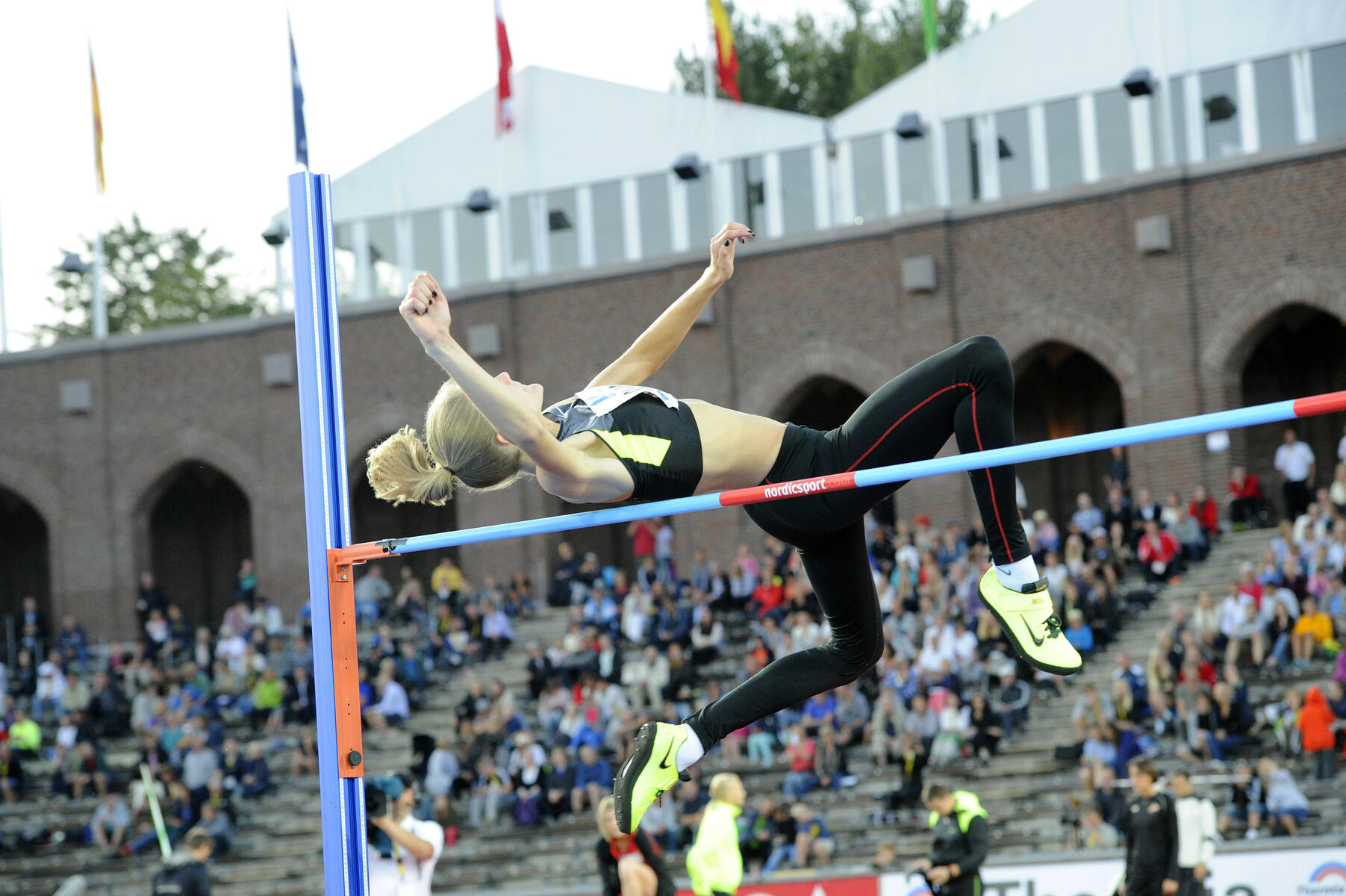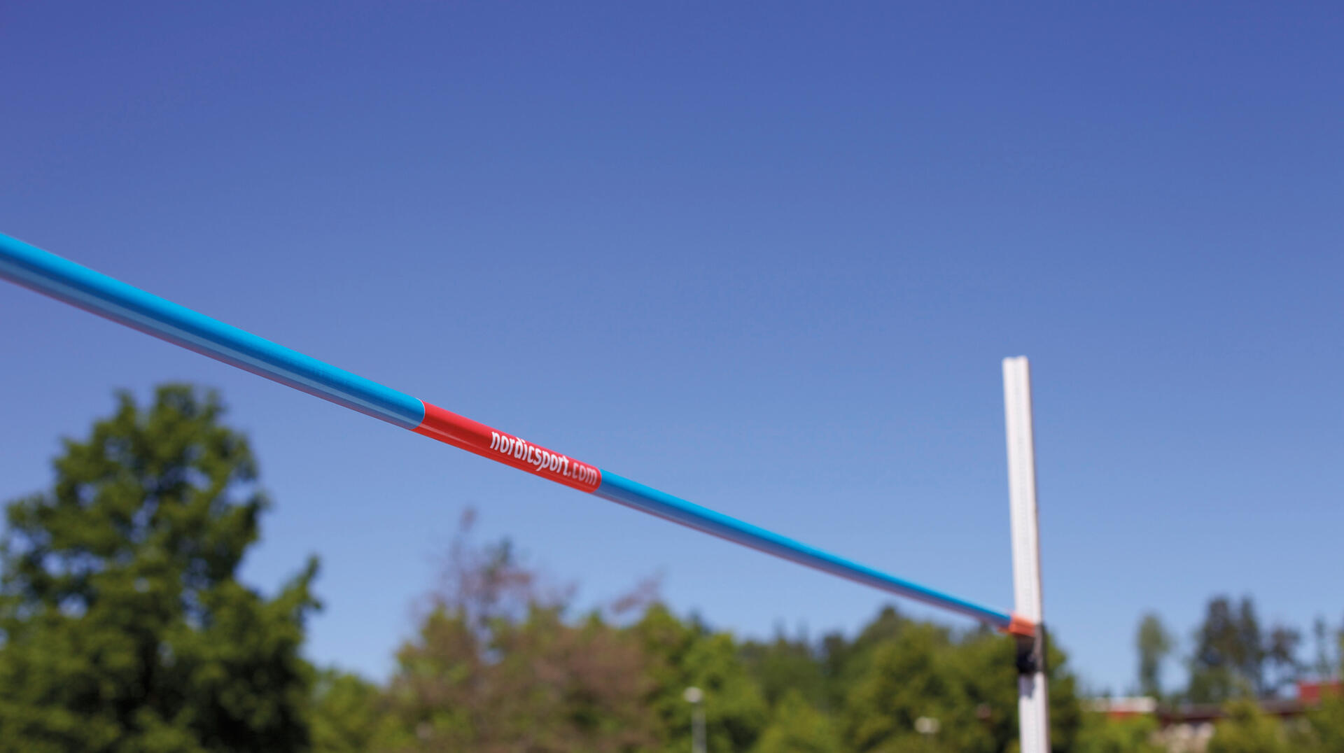 En perfekt höjdhoppsställning för skola och för träning. Tillverkad av aluminium med fot av pulverlackerat stål med hjul för enklare transport. Från 30 cm upp till 220 cm.