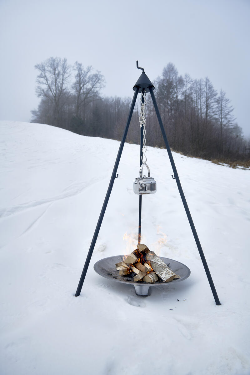 En smidig modell för det mindre sällskapet som är enkel att ta med sig ut i skog och mark. Livsmedelsgodkänd stål till stekytan och galvaniserade ben och handtag. Diameter på stekytan: 48 cm.