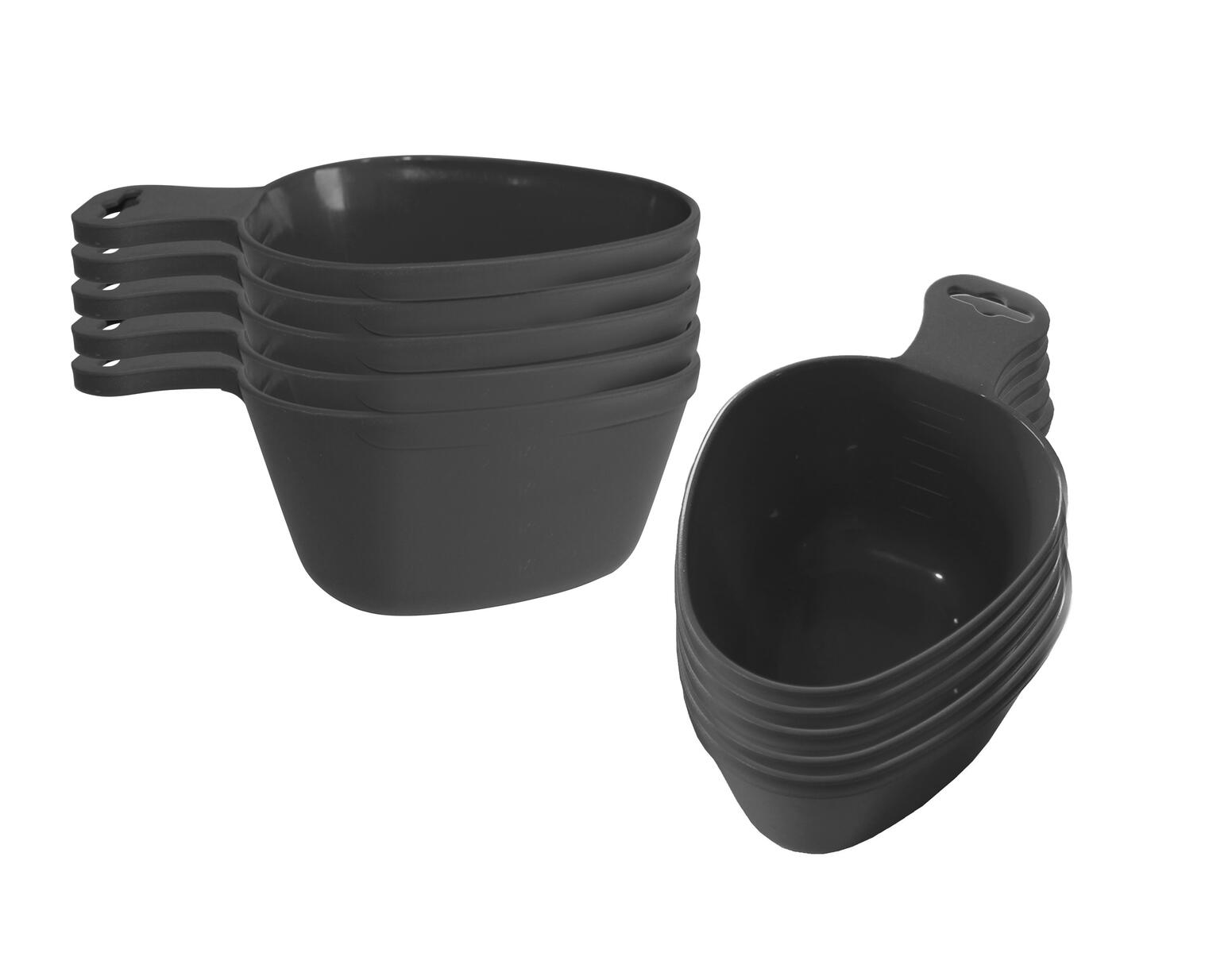 10 st/fp. En robust matkåsa/vattenskopa av 100 % förnybart material utan färgtillsatser, livsmedelsgodkänd. Rymmer 8 dl. Lämplig för både inomhus- och utomhusbruk. PE-baserat på sockerrör med samma hållbarhet och egenskaper som övriga plastprodukter. Mått: 30x16,5x8 cm. Diskas i övre delen av diskmaskinen.