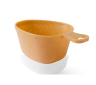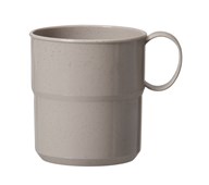 Kopp med handtag. Tålig och lätt, perfekt att använda utomhus och stapelbar för kompakt förvaring. Tål maskindisk. 30 cl. Tillverkad av biobaserad plast av sockerrör. Livsmedelsgodkänd. Vassa föremål kan orsaka repor i koppen, viss mat kan missfärga plasten.