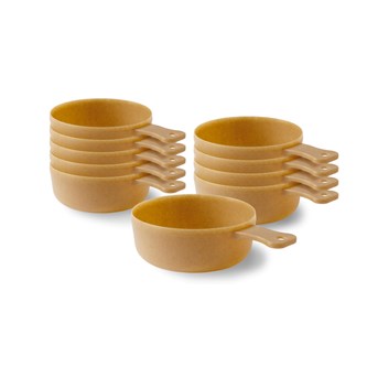 10 st/fp. En robust matkåsa/vattenskopa av 100 % förnybart material utan färgtillsatser, livsmedelsgodkänd. Rymmer 8 dl. Lämplig för både inomhus- och utomhusbruk. PE-baserat på sockerrör med samma hållbarhet och egenskaper som övriga plastprodukter. Mått: 30x16,5x8 cm. Diskas i övre delen av diskmaskinen.