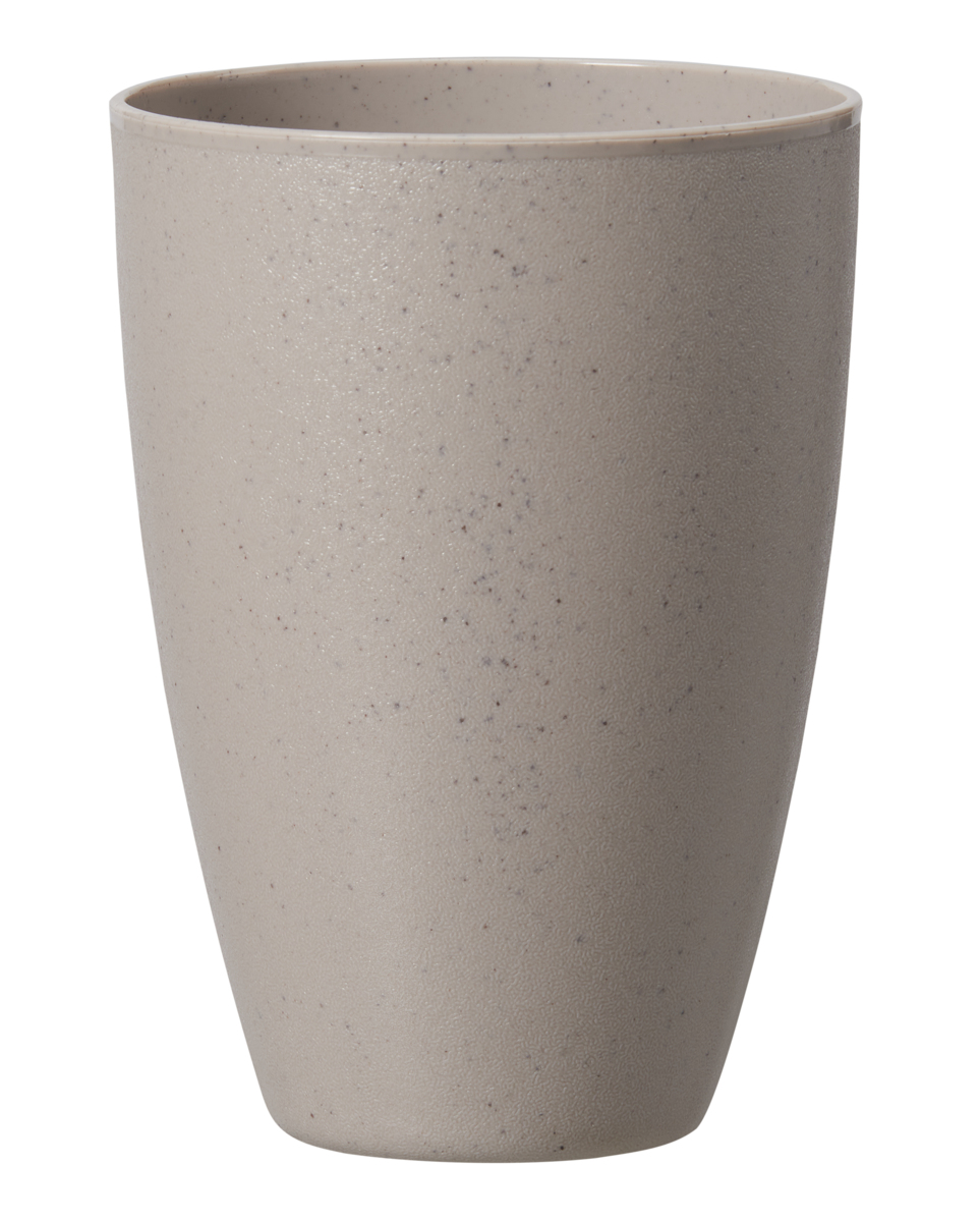 Stapelbar mugg. Tålig och lätt, perfekt att använda utomhus. Tål maskindisk. 40 cl. Tillverkad av biobaserad plast av sockerrör. Livsmedelsgodkänd. Vassa föremål kan orsaka repor i muggen, viss mat kan missfärga plasten.