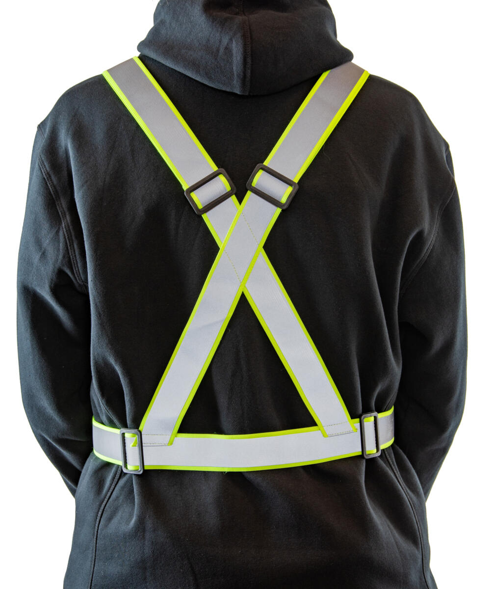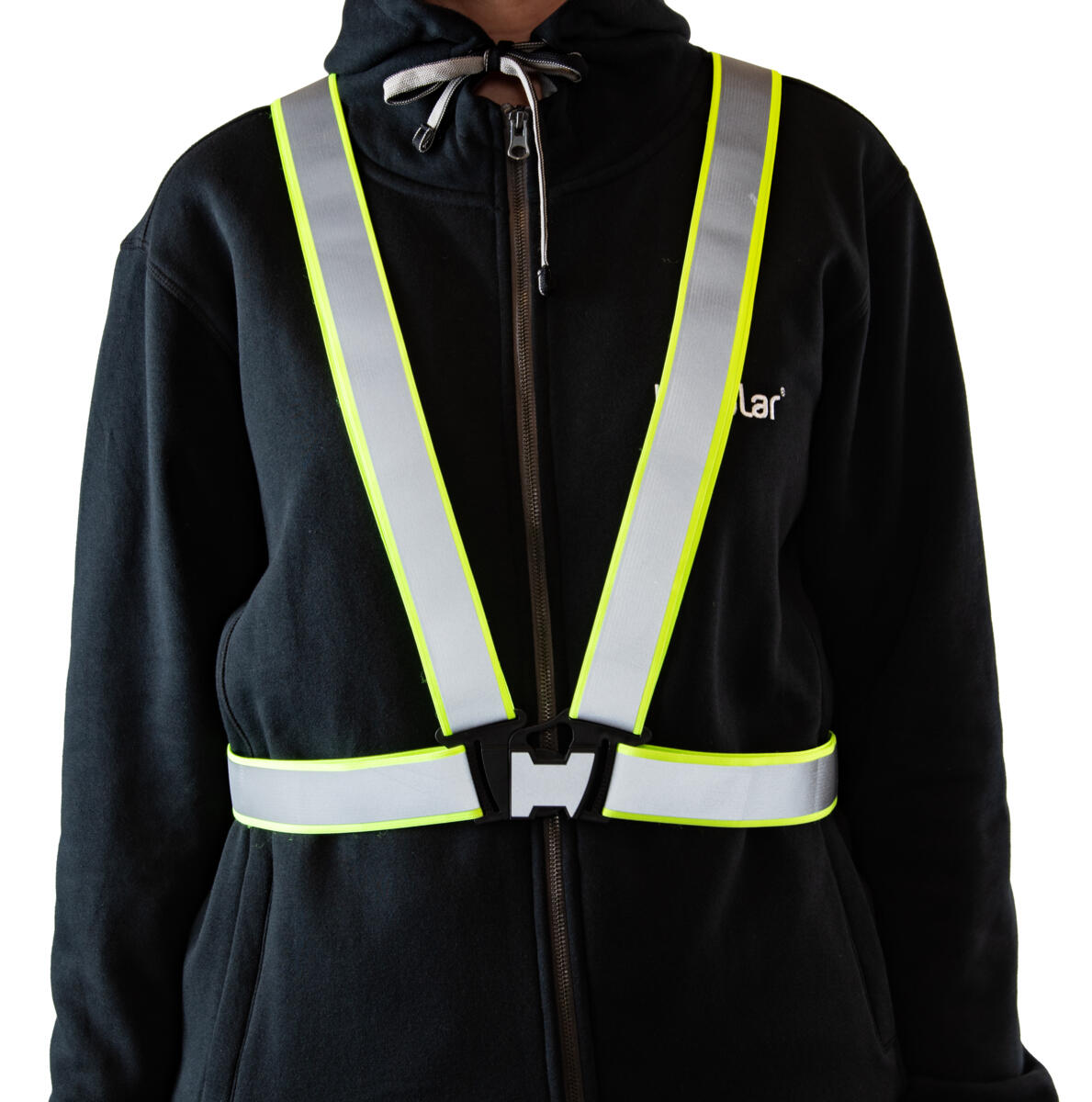 Elastisk reflexsele som ger större rörelsefrihet. Justerbar längd och bredd med kraftigt spänne fram. Godkänd enligt 13688:2013 och 17353:2020. Av polyester, spandex och POM.