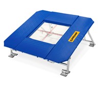 Den öppna ramkonstruktionen gör trampetten särskilt lämplig för svåra hopp. Studsmattan är mycket stabil. Mått: 120x120 cm, hoppduk 60x70 cm. Vikt: 38,5 kg.