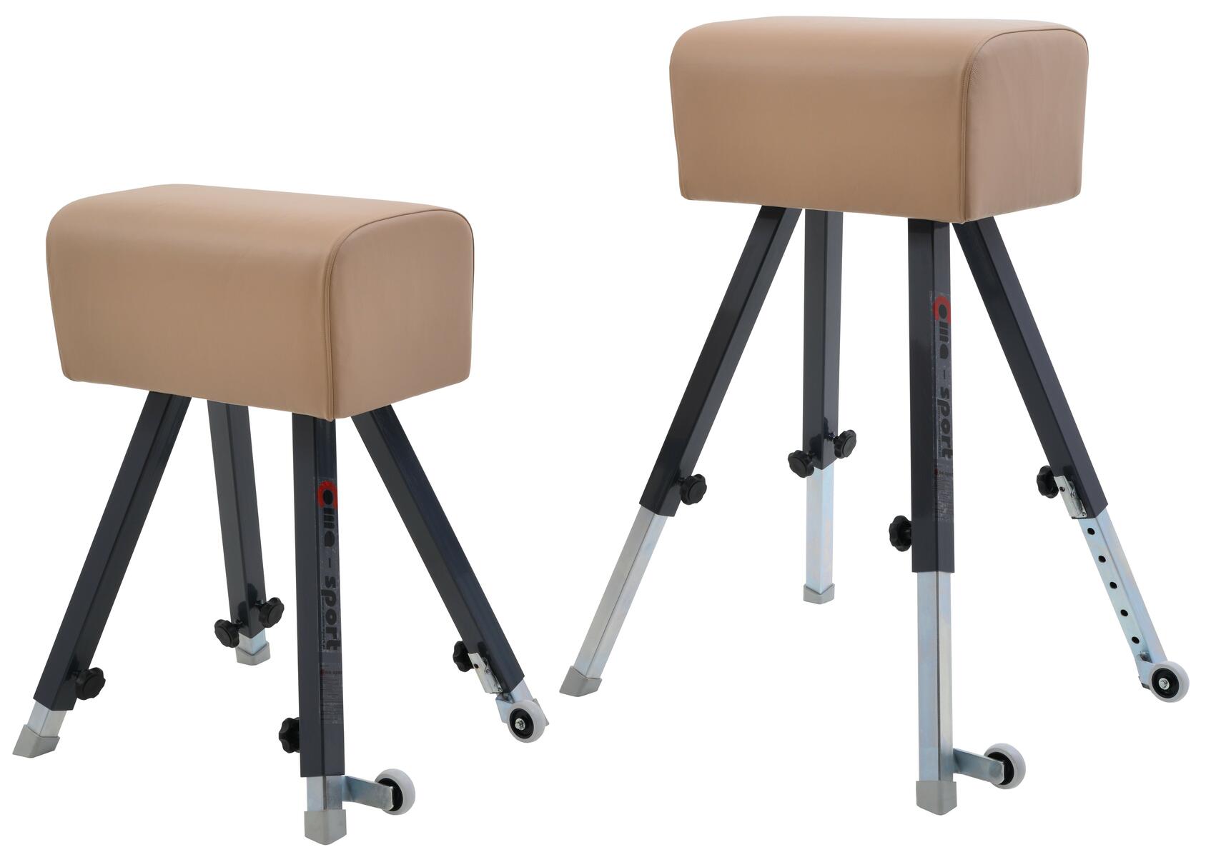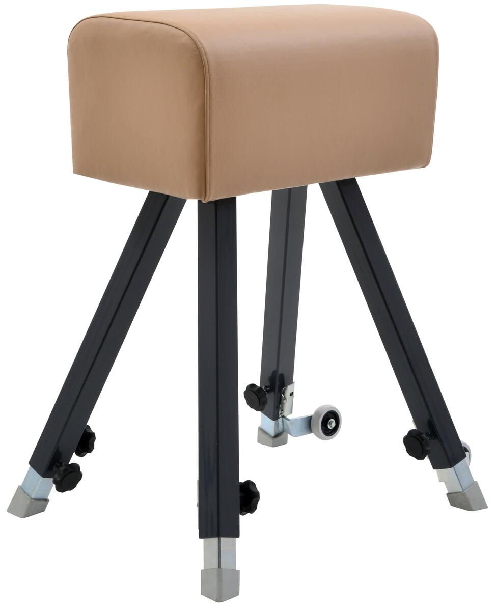 En hoppbock med ställbara ben i metall som enkelt kan justeras i höjden 110-170 cm med 5 cm intervaller. Kroppen är av skum som är täckt med syntetiskt läder. Benen är av pulverlackerat stål. 2 av benen är försedda med hjul för enklare förflyttning. Fötterna på bocken är försedda med anti-slip för att bocken inte skall glida på golvet. Längd på kroppen av bocken 60 cm. Godkänd enl. PN-EN 12196:2005 and 913:2008.
