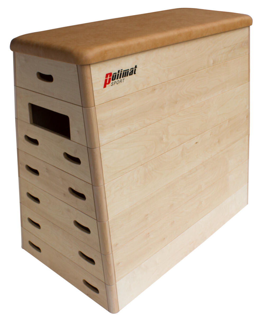 En hoppbock med ställbara ben i metall som enkelt kan justeras i höjden 110-170 cm med 5 cm intervaller. Kroppen är av skum som är täckt med syntetiskt läder. Benen är av pulverlackerat stål. 2 av benen är försedda med hjul för enklare förflyttning. Fötterna på bocken är försedda med anti-slip för att bocken inte skall glida på golvet. Längd på kroppen av bocken 60 cm. Godkänd enl. PN-EN 12196:2005 and 913:2008.