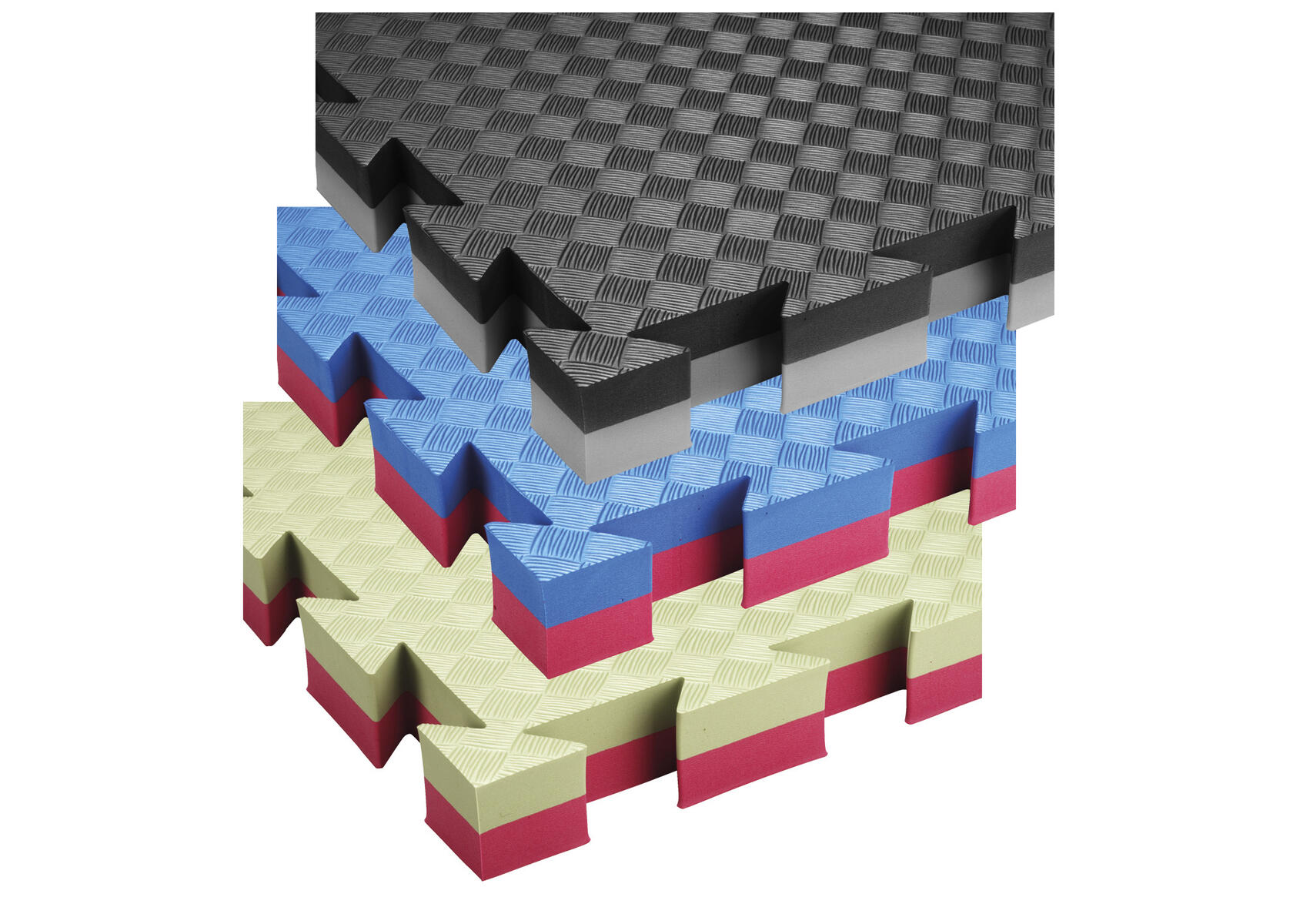 Mattan kan användas på båda sidor och den tandade kanten möjliggör hopkoppling. Till varje pusselbit ingår 4 kantlister. Godkänt fallunderlag enligt europeisk standard EN1177:2018 för inomhusanvändning till en fallhöjd på 145 cm. Mått: 100x100x4 cm.