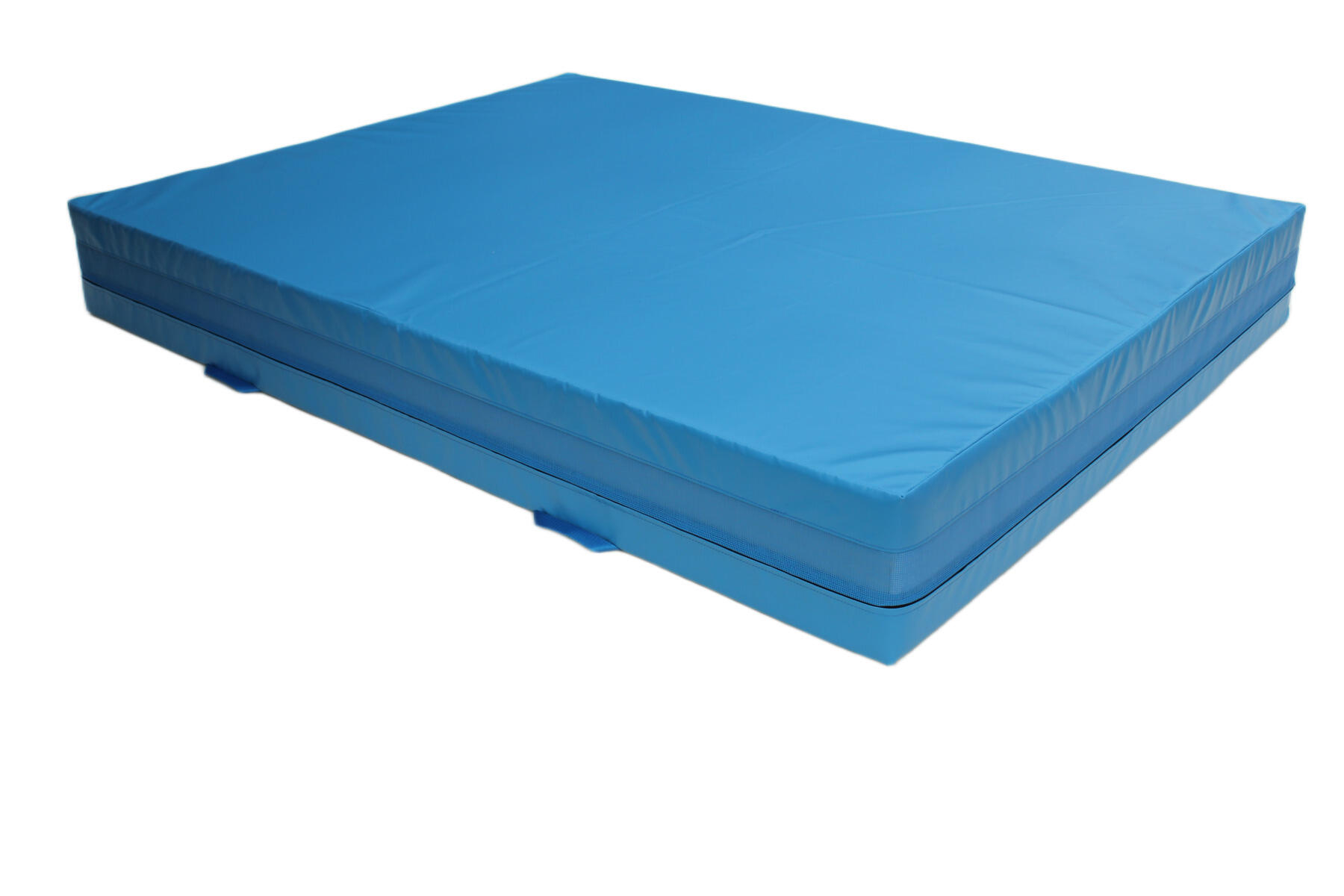 Landningsmatta med antiglid på undersidan. Testad enligt EN 12053. Mått: 300x200x20 cm. Av PU-skum och PVC utan förbjudna ftalater.