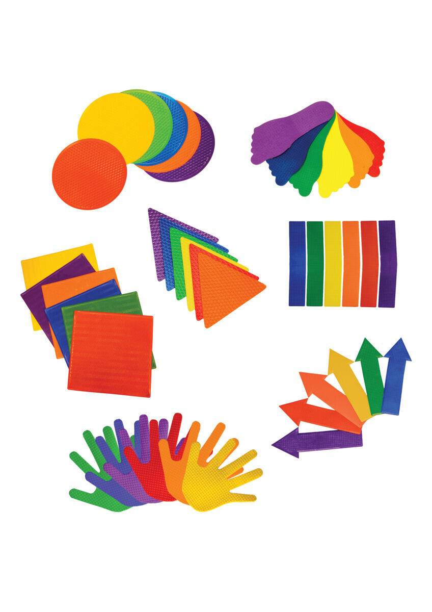 6 st/fp. Golvmarkering för lekar, motorikbanor och balansövningar i 6 olika färger. Tillverkade i halkfritt material som ligger stabilt på golvet. Fungerar även utomhus. Av TPE.