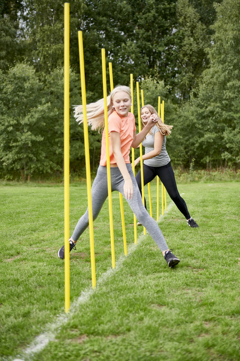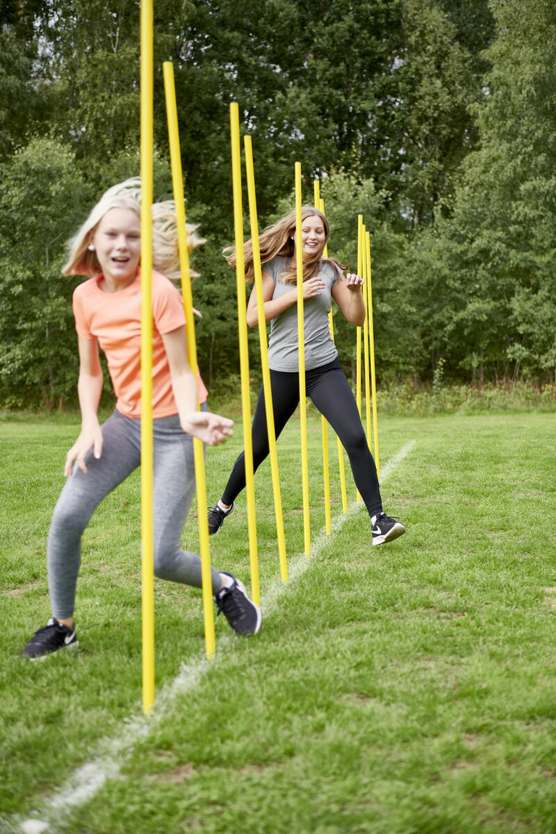 12 st/fp. Slalompinnar i plast för olika former av aktiviteter och träning. En spets av metall längst ner gör dem lätta att sätta ner i marken. Mått: L150 cm, ø 2,5 cm. Förvaring medföljer.