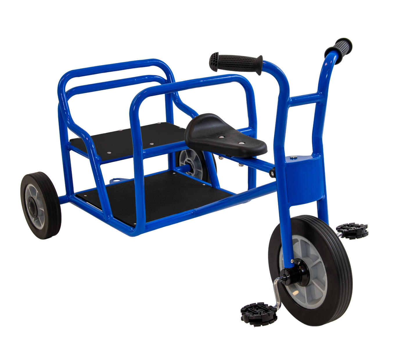 En rolig cykel med plats för en extra passagerare som utvecklar fantasi, sociala färdigheter, reflexer och motorik. Med kopplingsmöjlighet till cykelsläp 165235. Mått: L99xB60xH63 cm. Sitthöjd 39 cm, vikt 17,5 kg. Enkel montering krävs. PVC-fri. Från 3 år.