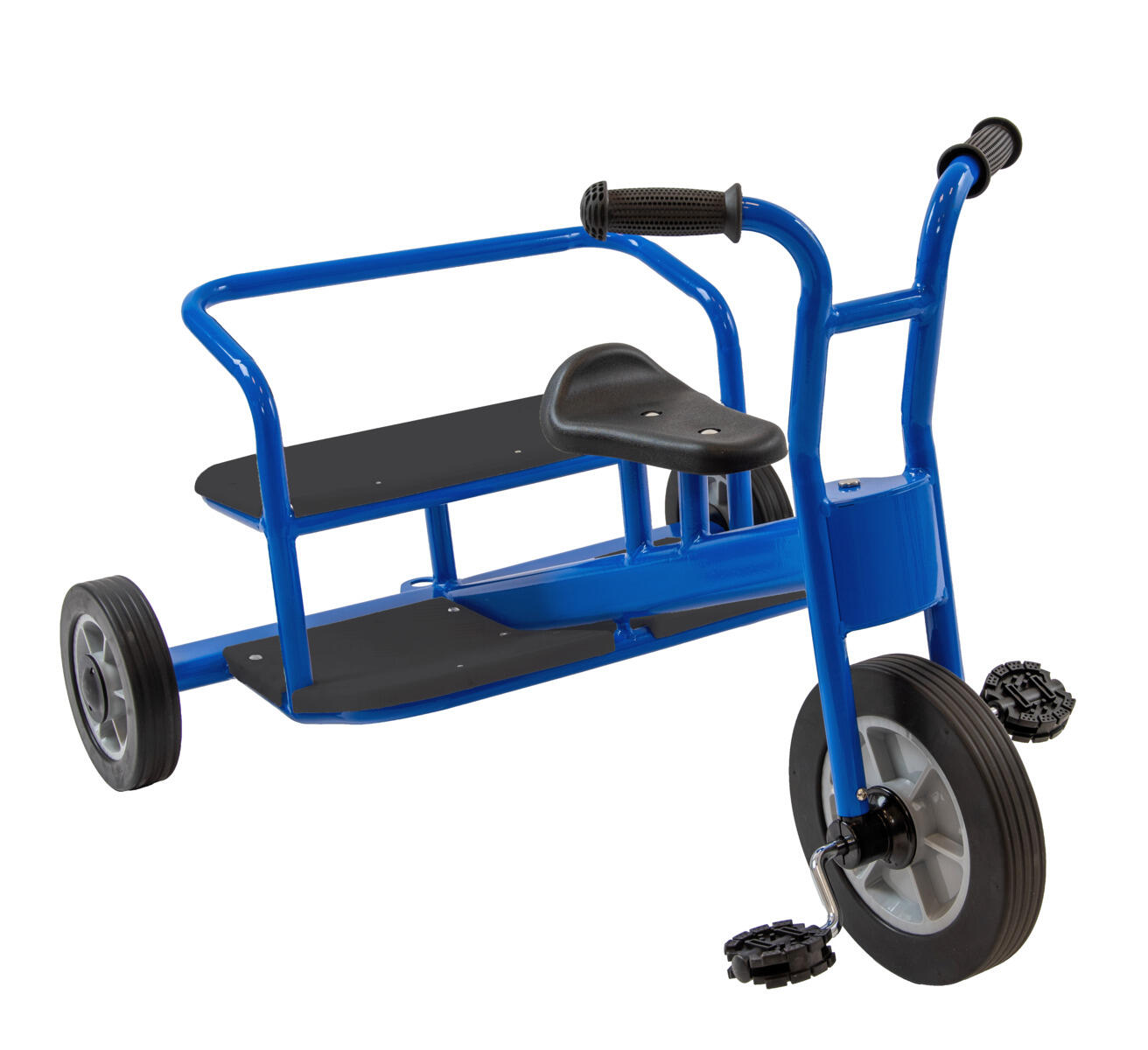 En rolig kompiscykel med plats för två extra passagerare bak. Passar utmärkt för rollekar som utvecklar barnens sociala samspel och samarbetsförmåga. Med kopplinsmöjligheter till cykelsläp 165235. Mått: L97xB79xH64 cm., vikt 17,8 kg. Sitthöjd fram 39,5 cm, sittyta bak 48 cm bred. Enkel montering krävs. PVC-fri. Från 3 år.