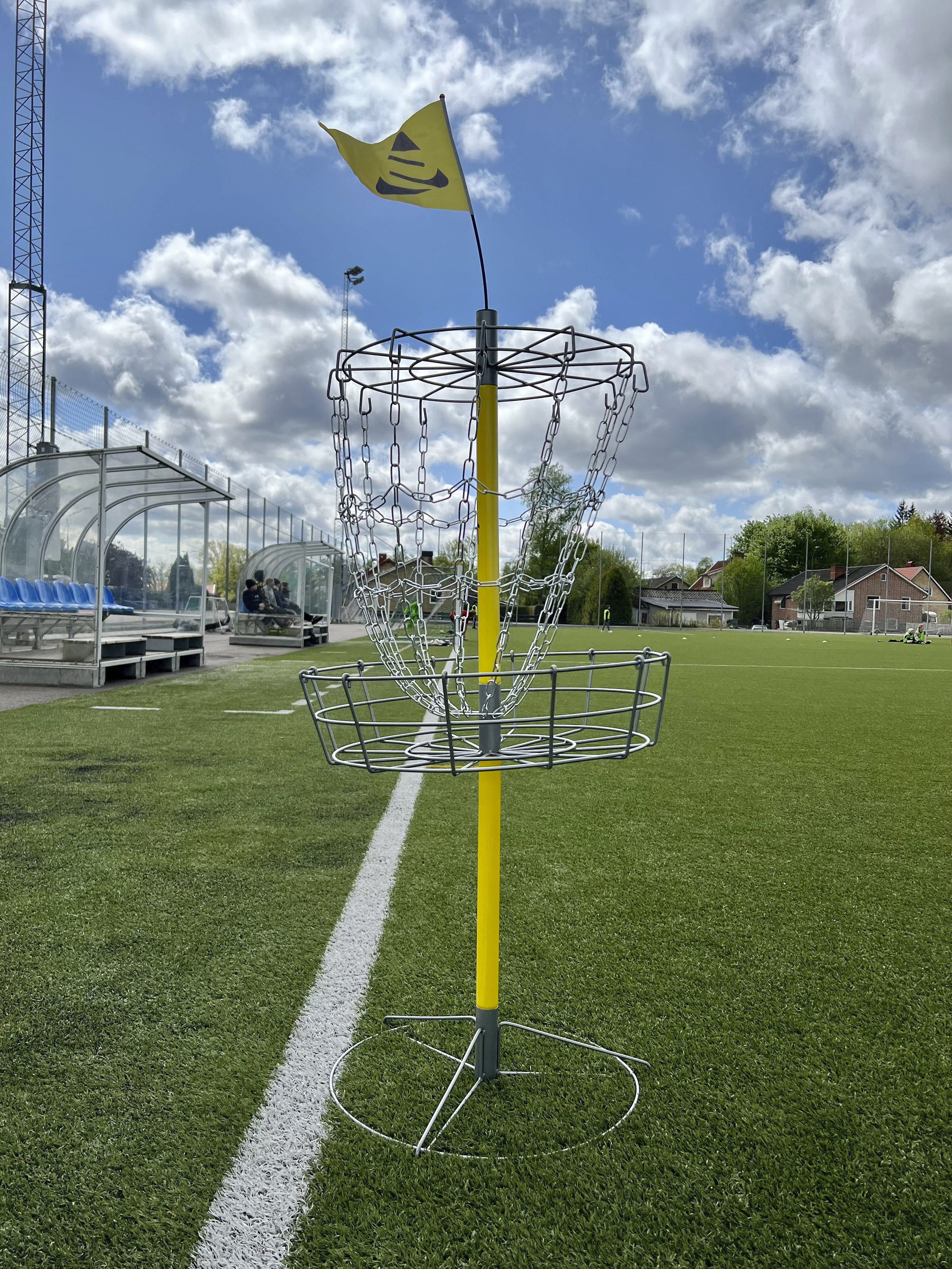 Utmärkt mål för träning och skolbruk. Mittstolpen är uppdelad i 2 delar för enklare transport och lagring. Den övre mittstolpen samt kedjor är galvaniserade och pulverlackade. Av stål. Vikt 10 kg. Mått: H128xB53 cm, foten är ø 58 cm.
