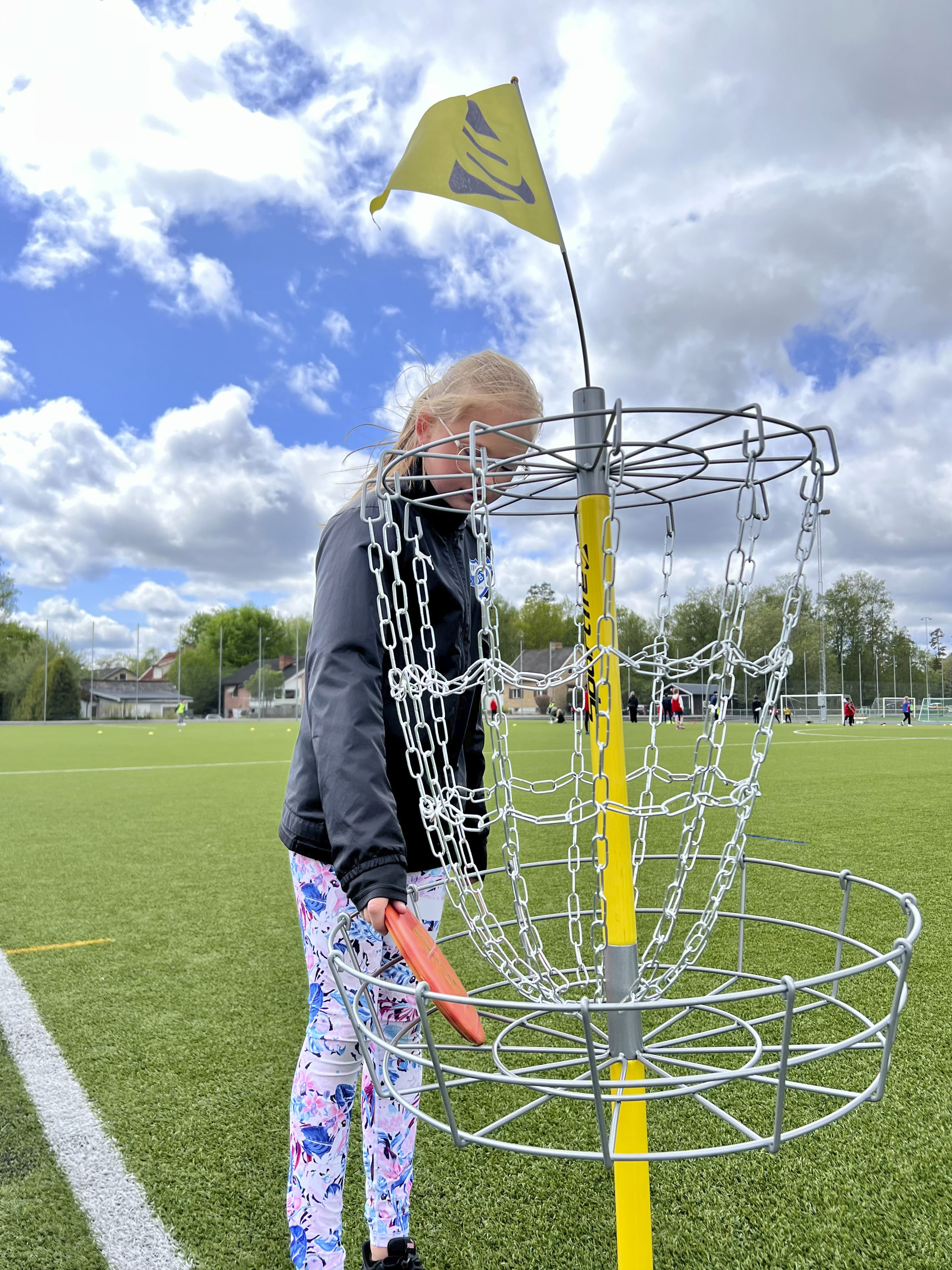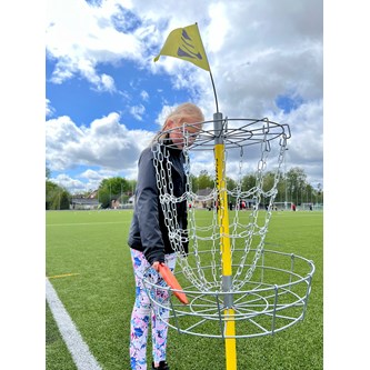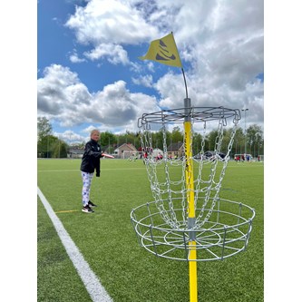 Ett enkelt mål med stativ som kan användas både inom- och utomhus. För kastövningar, frisbee, fotboll mm. Justerbar höjd i 3 lägen, mellan 88 cm och 135 cm. Ringen är 38x90 cm. Foten fylls med vatten eller sand. Av PVC, utan förbjudna ftalater.