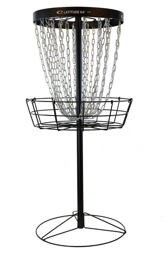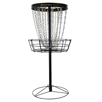 Latitude 64° Pro basket är en officiell korg och godkänd enl. PDGA. Korgen har dubbla kedjesatser som består av 14 inre och 14 yttre kedjor som ger en mjukare kant och ökar chansen för discar att stanna i kedjorna. Korgen är tillverkad av galvaniserat stål för att stå emot väder och vind. Den har spännskruvar för ökad stabilitet och svetsade muttrar för enklare montering. Korgen har fot för fastgjutning i marken. Stolpen i marken har måtten ø 60 cm och längd 52 cm. Vikt 1,45 kg. Höjden på korgen ovan jord är 138 cm och vikt 29,5 kg.