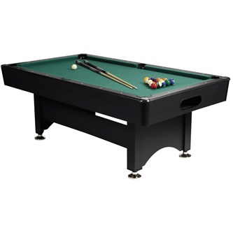 Ett biljardbord som passar utmärkt på skolan och fritids. Bordet har justerbara ben och automatisk bollretur. Yttermått: 213x118x80 cm, spelyta 192x96 cm. Spelyta av laminerad MDF. Startkit med 2 köer 147 cm, 1 bollset 57 mm, 1 triangel, krita och borste är inkludertat. Vikt 82 kg. Endast benen kräver montering. PVC-fri.