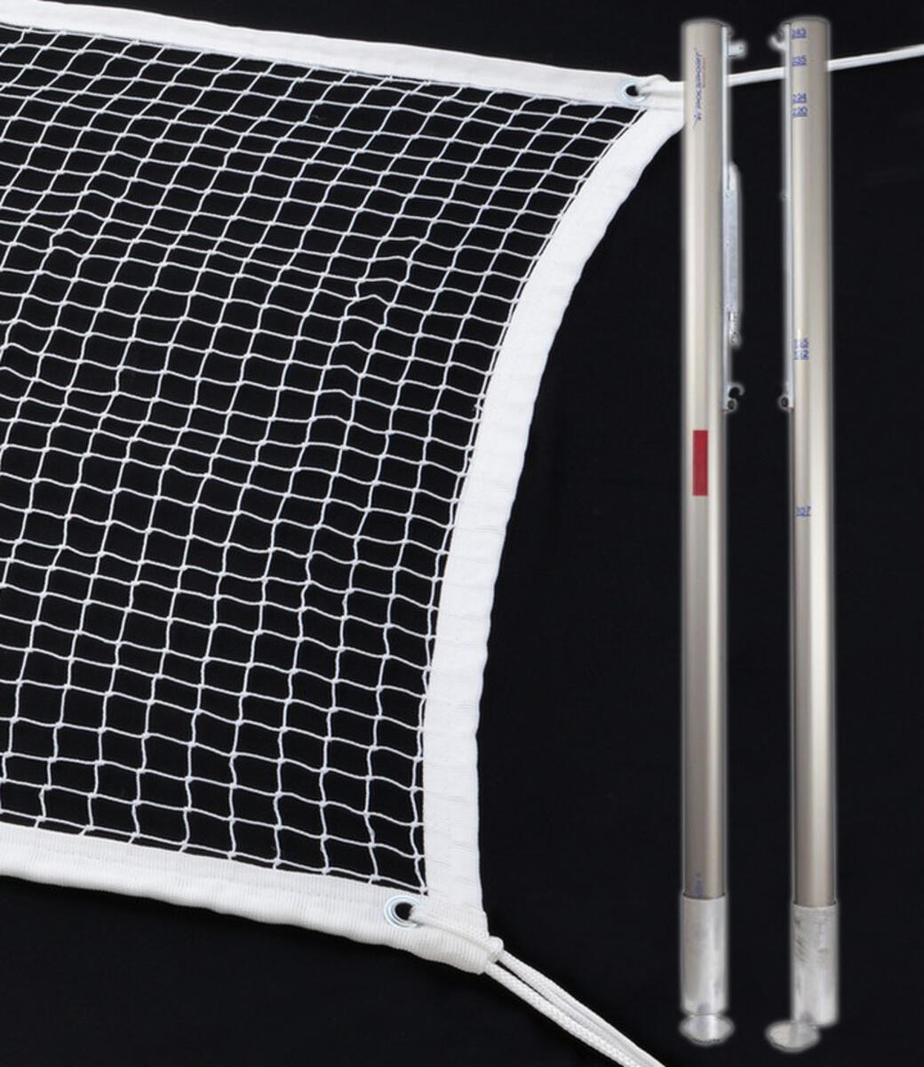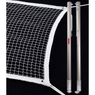 Reglementsenliga stolpar i aluminium som enkelt kan justeras i höjd. Passar till olika sporter såsom volleyboll, badminton och tennis. 2 vadderingar till stolpen medföljer. För utom- och inomhusbruk. Badmintonnät av PE. Mått: 6,1x0,76 m. Måtten är EU-standard.