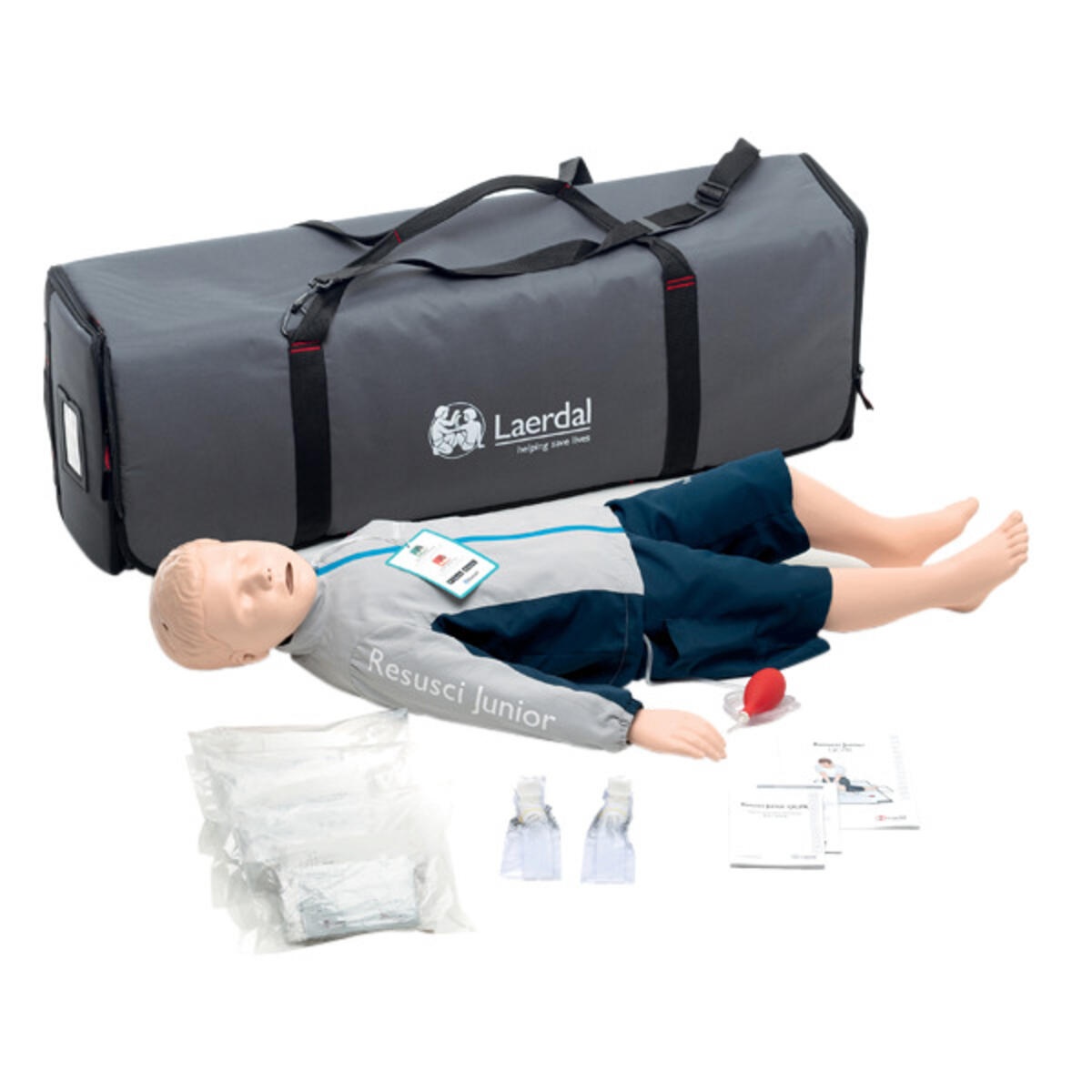 Livräddningsdocka i helkroppsformat i juniormodell. Luftvägar som kan öppnas genom att böja huvudet bakåt eller lyfta hakan och/eller käken. Hörbar signal som bekräftar korrekt kompressionsdjup. Kompressionsfjädrar som motsvarar normalt motstånd. Avtagbar ansiktsmask för användning flera gånger. Av PP och PVC utan förbjudna ftalater.