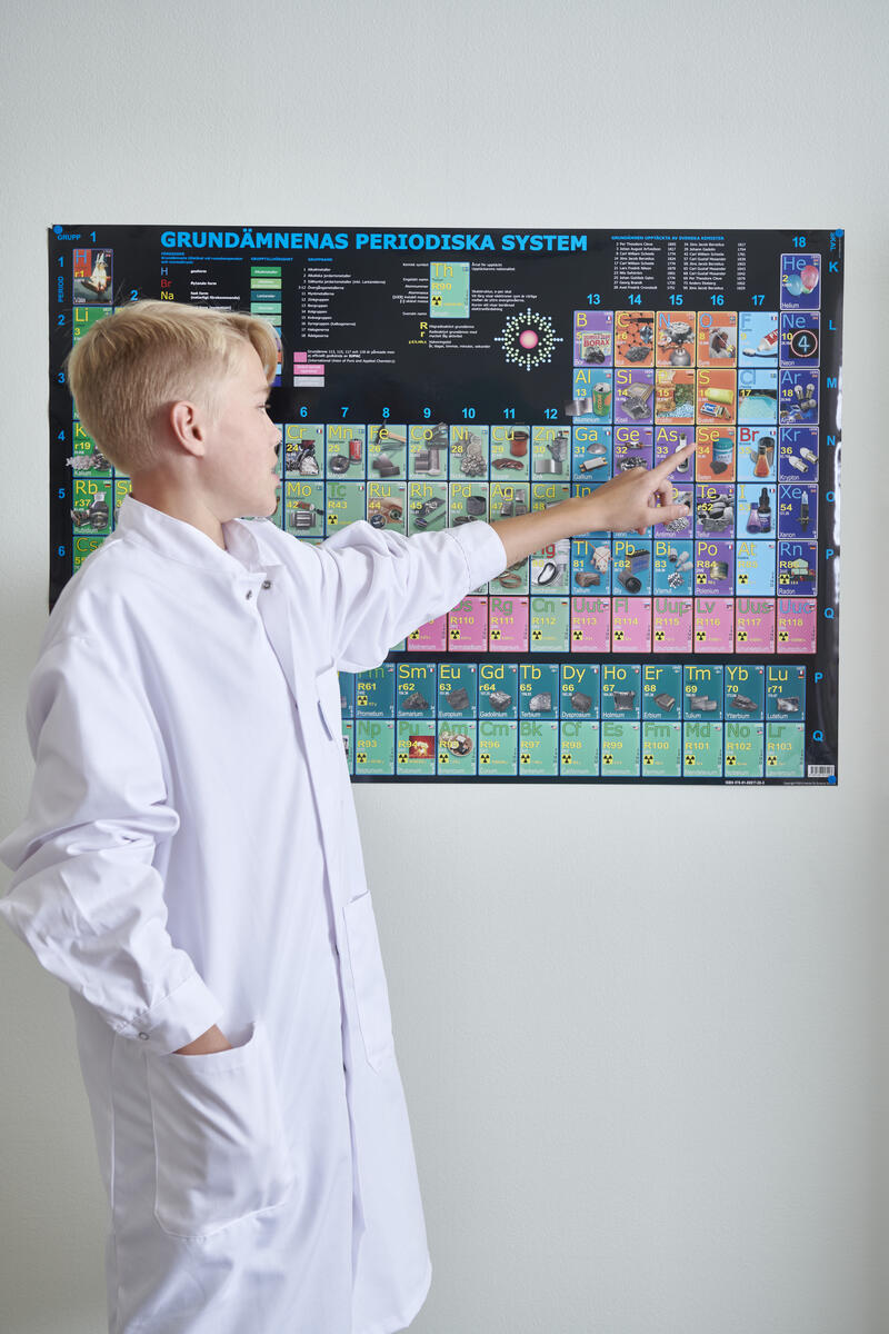 Beskrivning av grundämnenas användningsområde och bildförklaringar. Storlek A3.