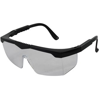 Säkerhetsgodkända skyddsglasögon med funktionell design för barn. Glasögonen har sidoskydd samt längdjusterbara skalmar. Reptåliga genomskinliga linser av slagtålig polykarbonat.