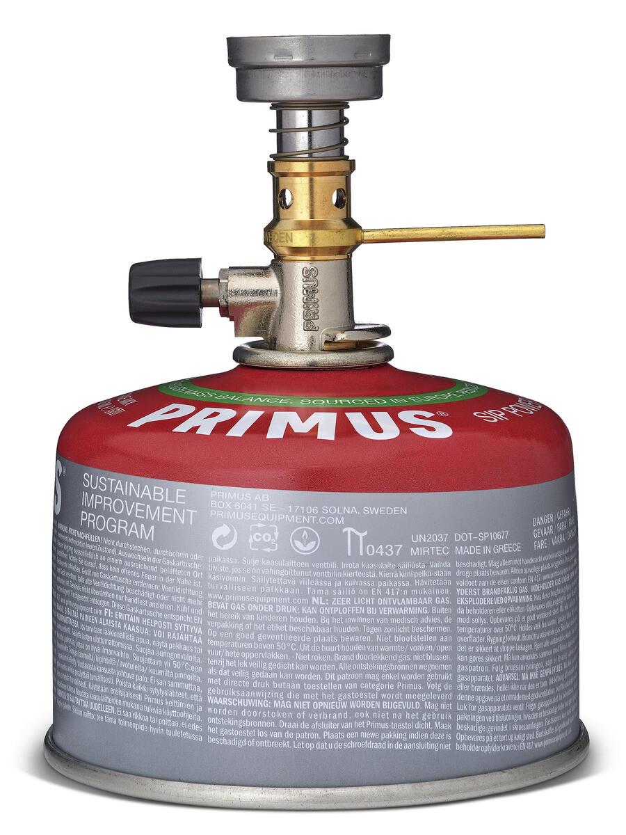 Laboratoriebrännare passande engångsbehållare. Laboratoriebrännare för engångsflaskor, lämpliga då man ej har ett fast rörsystem och vill hålla ner mängden gasol. Ventil för reglering av låga samt justerbart luftintag. B33xH67xD60 mm.