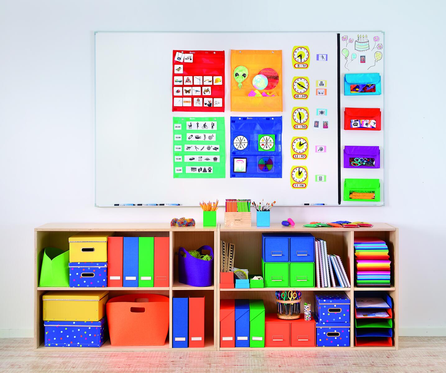 4 st/fp. Smarta förvaringsfickor i 4 färger med ett transparent fönster för att man enkelt ska kunna se innehållet. Perfekta för smart organisation vid din whiteboard av t.ex. pennor, tavelsudd, siffror, geometriska figurer och klockor. Fickorna är magnetiska och kan förvara max 350 g var. Mått: 23x14 cm. Av nylon. PVC-fri.
