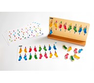Ett kreativt, självrättande spel för att observera, resonera och leta efter ledtrådar. Sätt strumporna på tvättlinan men var noggrann med att det är rätt strumpa på rätt håll och på rätt plats! Innehåller 6 dubbelsidiga kort, 16 magnetiska trästrumpor, träpanel och en lärarhandledning. Mått: 29x16x0,5 cm. PVC-fri. Från 4 år.
