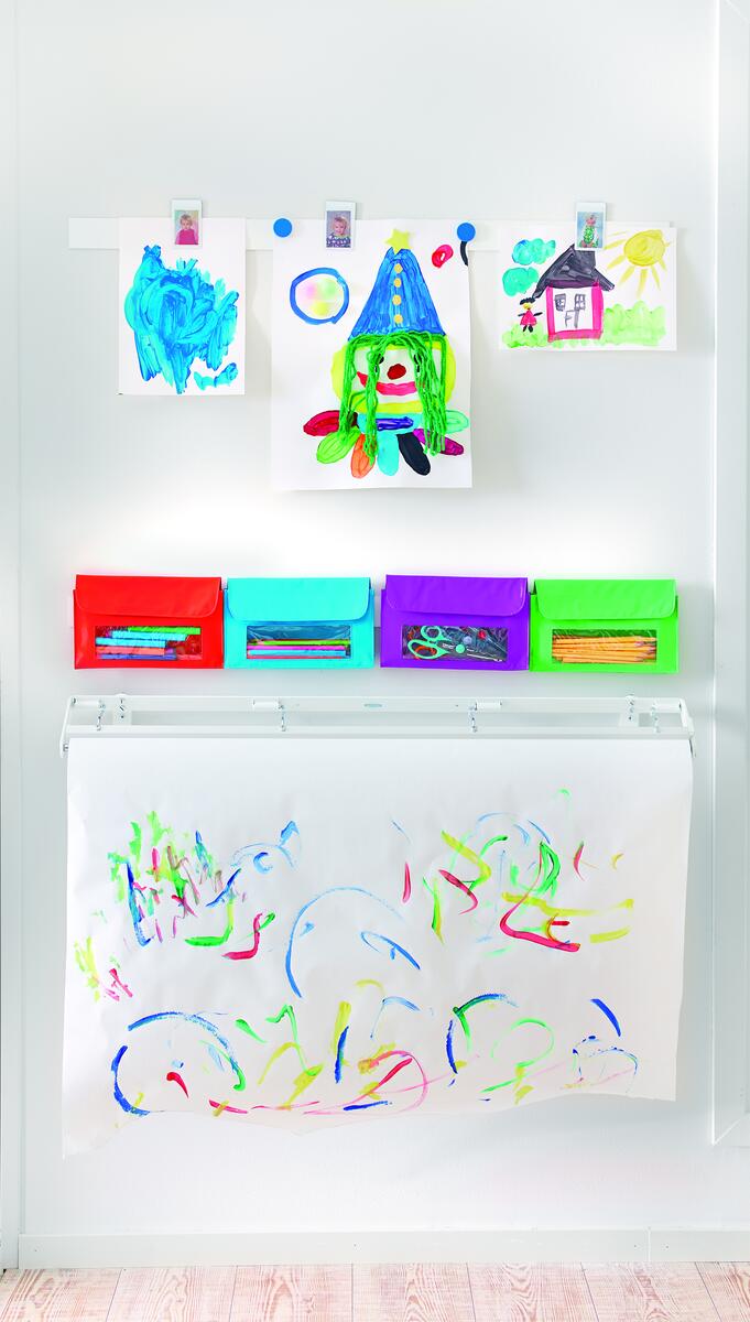 4 st/fp. Sätt upp dagens schema eller gör individuella scheman för barnen. Även ypperlig för sorterings- och klassificeringsövningar, eller för läs- och skrivövningar. Fem rader med plastfickor där man kan fästa egna kort. Baksidan har två fickor där man har möjlighet att sätta lite större kort. Toppen på tavlan är magnetisk och fungerar därför utmärkt att hänga på en whitebordtavla. Har även två öglor för upphängning på vägg. De 4 olika tavlorna kan kopplas ihop med kardborrefästningen. Mått: 42x35 cm. Av nylon och PVC.