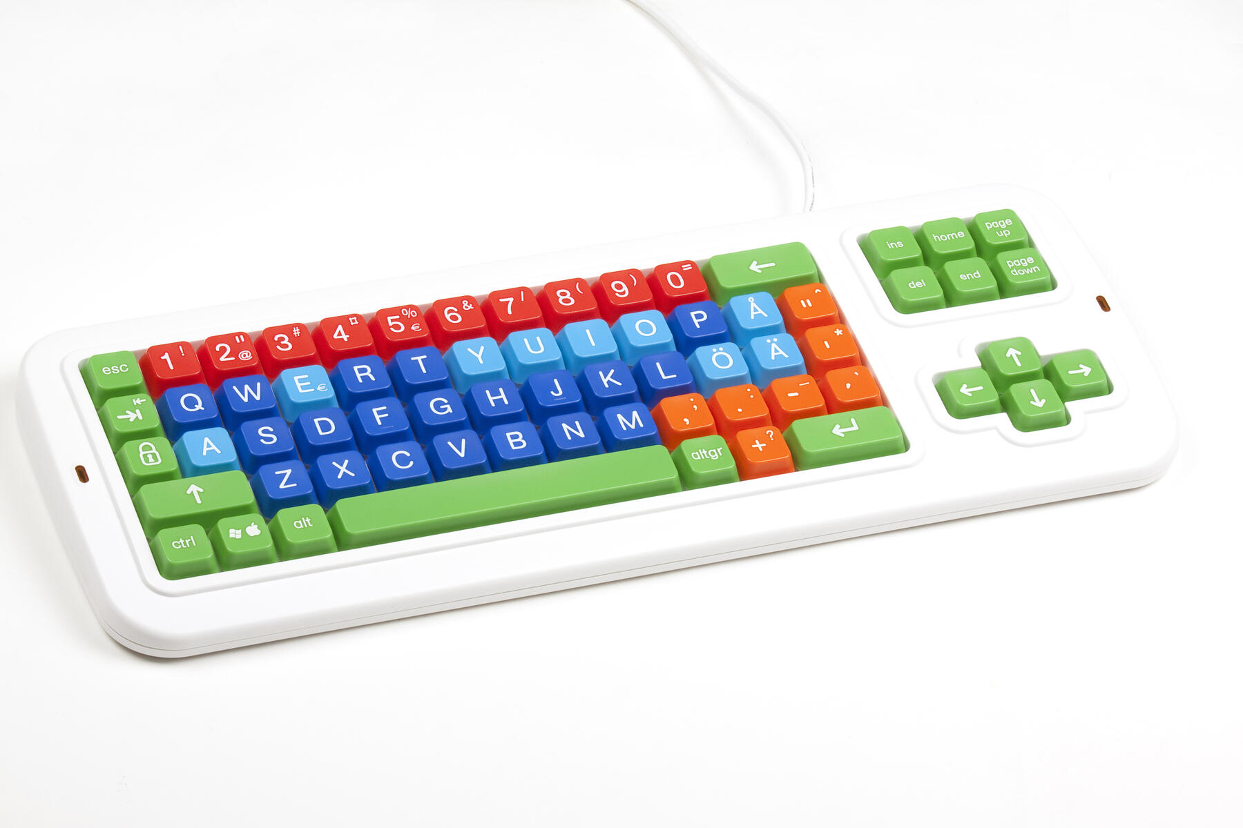 Clevy tangentbord är utvecklat för skola, samt barn och vuxna med speciella behov (exempelvis synsvaga, personer med dyslexi, motoriska funktionssvårigheter etc.). Clevy är ett mekaniskt tangentbord som har invändiga stålramar och varje enskild tangent kan hantera över 60 miljoner tangenttryckningar. Mekaniska tangentbord erbjuder mer ljud och taktil feedback, än membrantangentbord. De klara färgerna gör att detta tangentbord är attraktivt att jobba med, men först och främst hjälper färgkodningen barn och vuxna genom att klart skilja mellan de funktionella områdena på tangentbordet. Siffror har en färg (röd), bokstäver har en annan färg (blå) och aktionstangenter som Enter, DEL etc en tredje färg (grön). Tangenterna är fyra gånger större än de på ett vanligt tangentbord. I tillägg är symbolerna på tangenterna förstorade så att det är lättare att identifiera de olika bokstäverna och siffrorna. Antalet tangenter på Clevy tangentbord är betydligt färre än antalet på ett standard tangentbord. De tangenter som används sällan (som F1-F12, PrtSc etc) är borttagna så att man kan fokusera på de som är viktiga för att skriva osv. De återfinns dock som softkeys på PCn vid behov. Clevy har ett inbyggt vätskeskydd som gör att spill på tangentbordet dräneras ut genom hål i botten av tangentbordet. Alla tangenter har en upphöjd ”vall” för att motverka att spill rinner ner till den känsliga elektroniken inuti själva tangentbordet. Clevy tangentbord är också betydligt lättare att rengöra än konventionella tangentbord och kan också fungera på sjukhus, VC etc. Tangentbordet är 100 gånger starkare än ett vanligt tangentbord. Detta gör att det tåler mycket tuffare behandling och ägnar sig därför mycket bra till barn, skola eller användning på institutioner. Tangentbordet är WiN/ PC/MAC/Ipad kompatibelt. Mått: 48x18x3,5 cm.