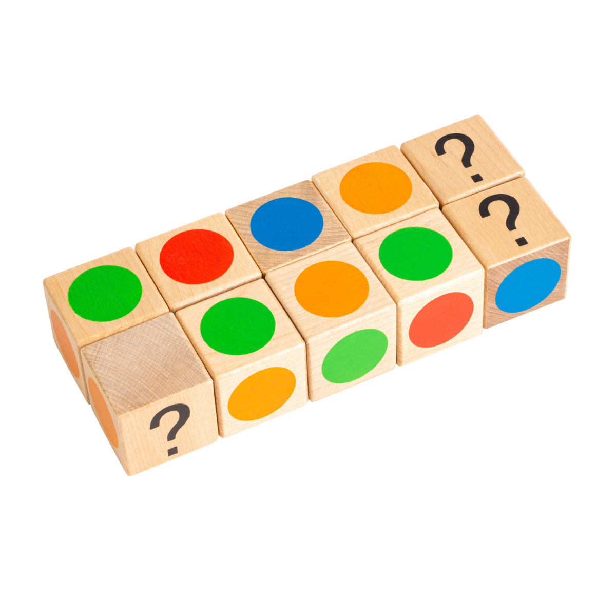 10 st/fp. Praktiska trätärningar med tydliga symboler som eleverna kan använda för att visa sin status. Tärningarna har fyra markeringar: röd kan betyda att jag arbetar koncentrerat och grön kan betyda att det går bra att ställa frågor etc. Frågetecknet betyder att jag har en fråga. Hjälper till med kommunikation och samarbete. Underlättar för barn och lärare att förstå varandra. Mått: 3,6x3,6x3,6 cm. Från 3 år.
