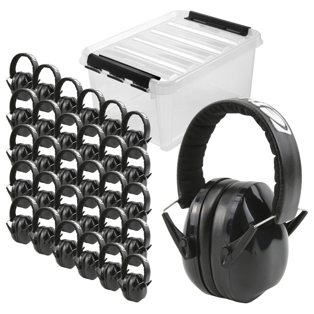 30 st AE-54 hörlurar i förvaringslåda. Praktiska och tåliga hörlurar med ljudreducerande öronkåpor med minimalt ljudläckage. Tuggresistent kabel med förstärkta kabelinfästningar. På varje sladd sitter ett litet kardborreband för att sladdarna lätt ska kunna rullas ihop och förvaras enkelt utan trassel. Från 5 år.