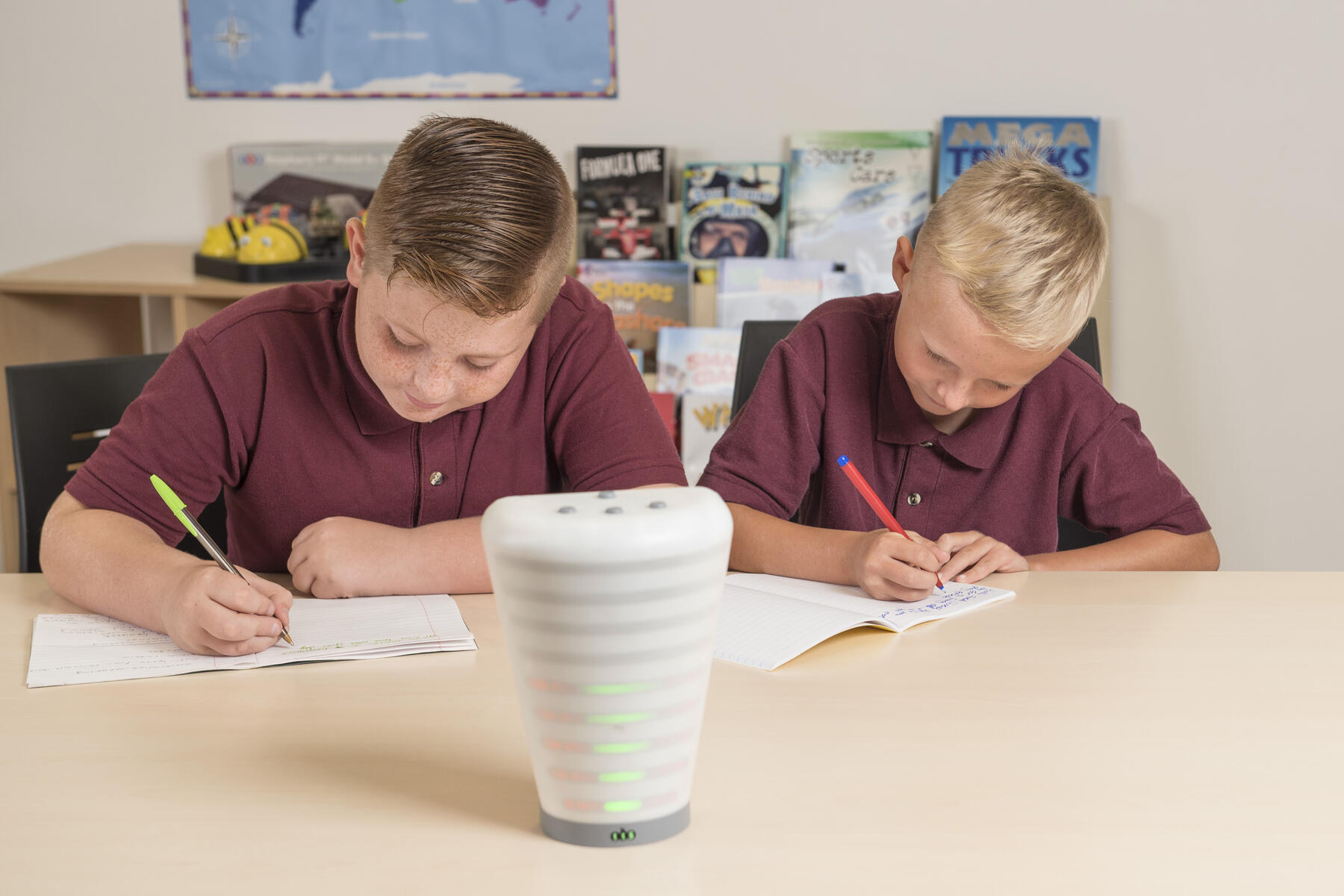 Ljudmätaren visar ljudnivån för att hjälpa eleverna att begränsa sin egen röst. Kan ställas in på olika nivåer för olika aktiviteter. Om nivån uppnås blinkar en LED-lampa. Mätaren laddas via USB-kabel, alt. 3xAAA-batteri. Batteri och kabel medföljer inte.