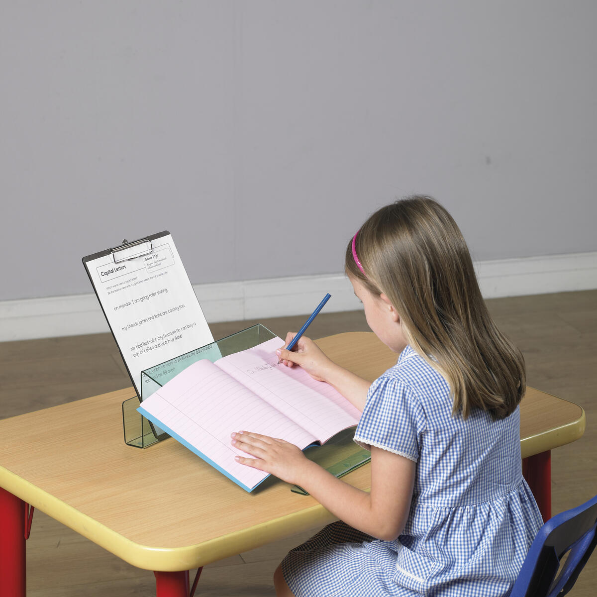 Hjälper barn att arbeta och skriva med den optimala vinkeln (20 grader) och få en bra hållning. Den sitter stabilt med gummitassar så barnen kan använda båda händerna. Från 4 år.