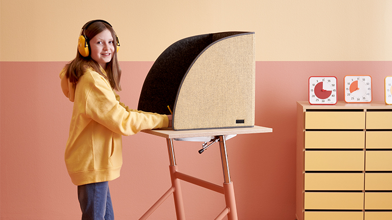 En del barn behöver lite extra lugn och ro runt sig för att kunna fokusera och koncentrera sig på sin uppgift. Här har vi samlat kompensatoriska hjälpmedel med just det syftet. Bordsskärmar som skärmar av och ljuddämpar, Time Timers® som ger barnet en tidsuppfattning, Tangle-produkter som blir ett sensoriskt och motoriskt fokus och tyngdprodukter för att lugna spring i benen.
