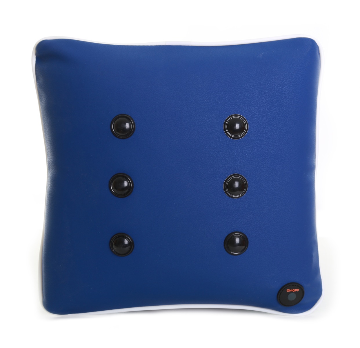 En massagekudde med avtorkningsbar yta. Uppladdningsbar med USB-kabel. Fulladdad håller i ca 18 timmar. 2 olika vibrationslägen. Auto på-/av-knappen gör att den startar automatiskt och stänger av när den inte används. Mått: 30x30x12 cm. Vikt ca 500 g.