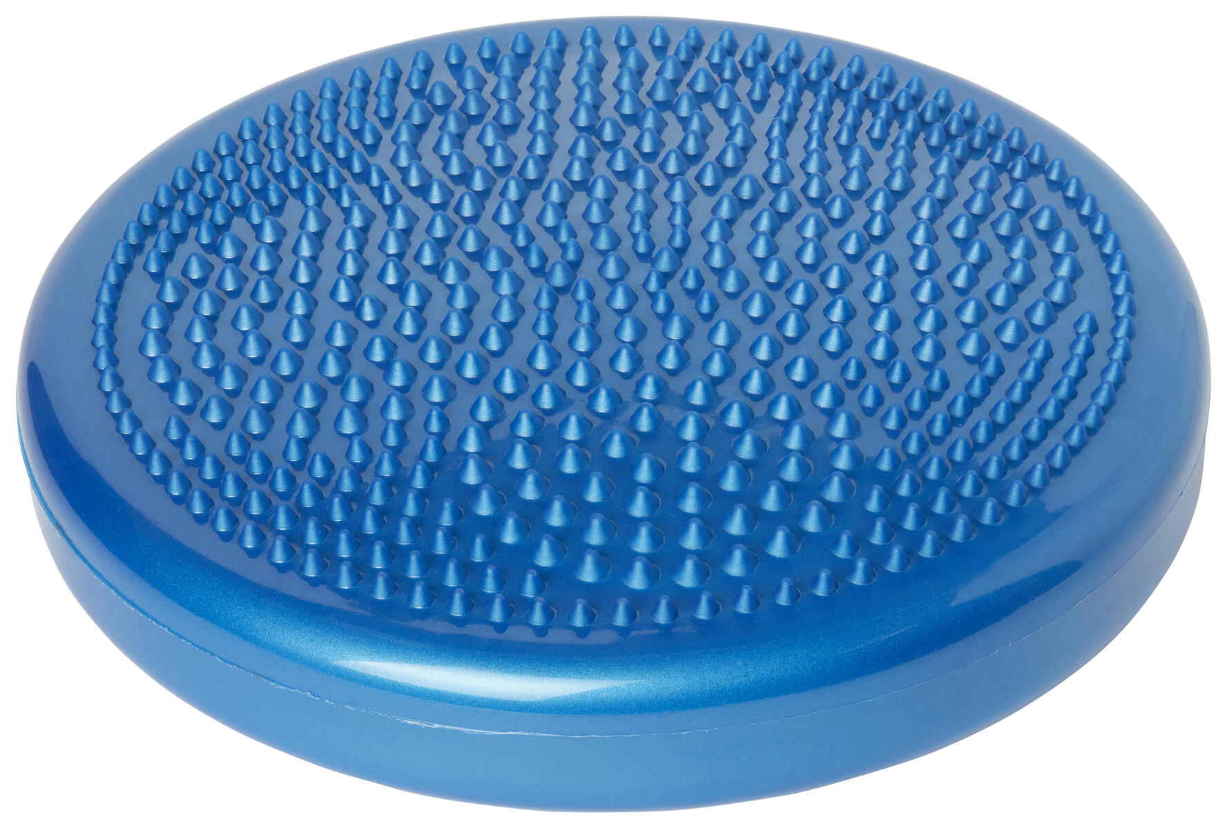 Uppblåsbar rund balans/luftkudde med noppor på ena sidan och små kulor på andra sidan. Kan även användas som massagekudde Mått: diameter 32 cm. Av PVC, fri från ftalater.