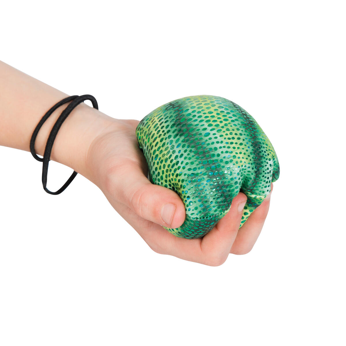 1 st. Fascinerande stressboll som stimulerar sinnena och finmotoriken. Gjord av glittrigt tyg som även ger en visuell stimulering. Olika färger. Mått: 10 cm. Vikt: 110 g. PVC-fri. Från 3 år.