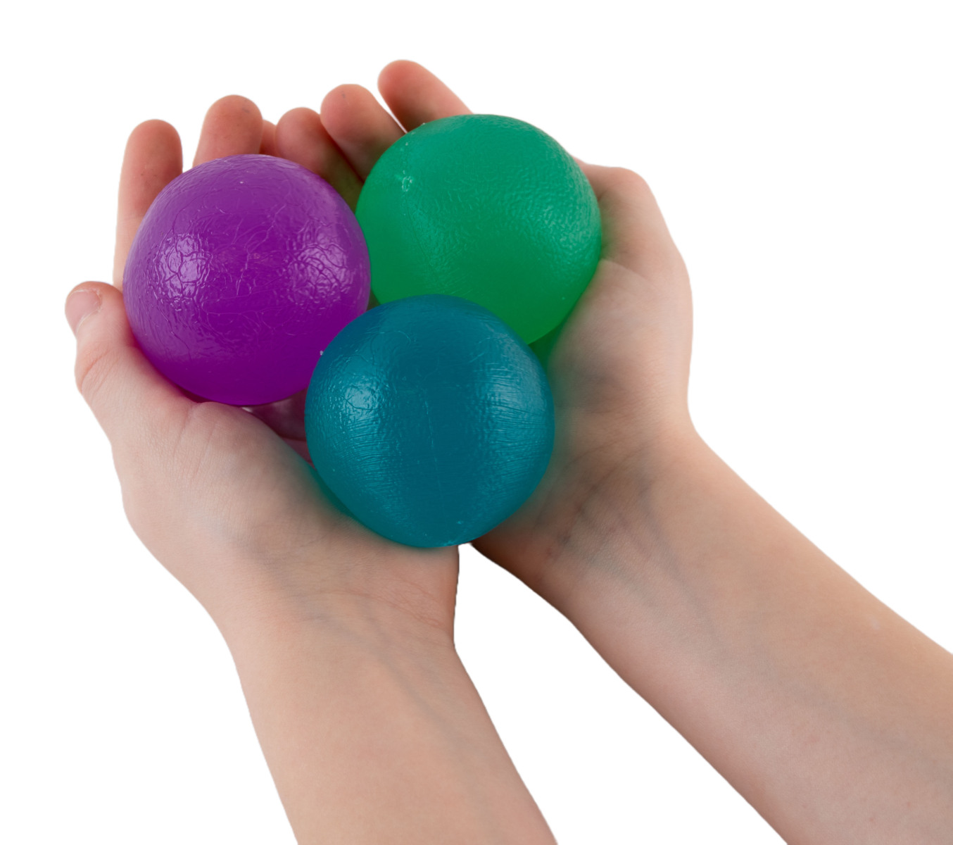 Lätta bollar med 3 olika motstånd: fast, mjuk och lätt. Avstressande, ger fin taktil stimulering och tränar hand- och fingermuskulaturen. Mått: ø 5 cm. Material: TPR. PVC-fri. Rekommenderas från 5 år.