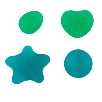 Stressbollar i olika former och färger. Hårdare än vanliga stressbollar men mjuka nog att klämma på för att minska stress. Har också en taktil yta. PVC-fri.