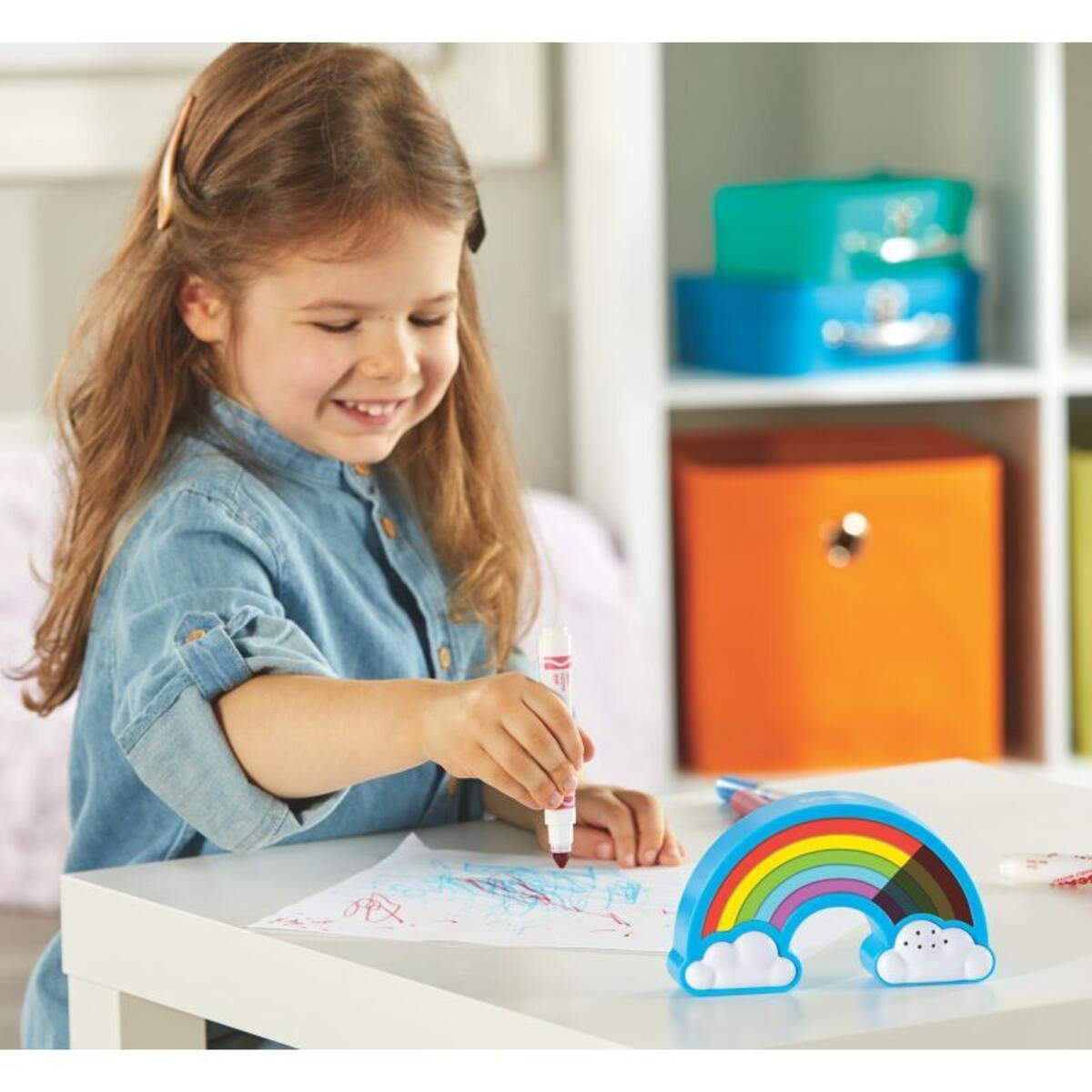 Ett färgrikt sätt att hålla koll på tiden. Upphängningsbar med både hål för skruv och magneter. Justerbar volym. 1, 3, 5, 10 och 15 minuter som val. Valbart att räkna upp eller ner. Drivs av 3 st AAA-batterier, ingår ej. Mått: 15x8 cm. Från 3 år.