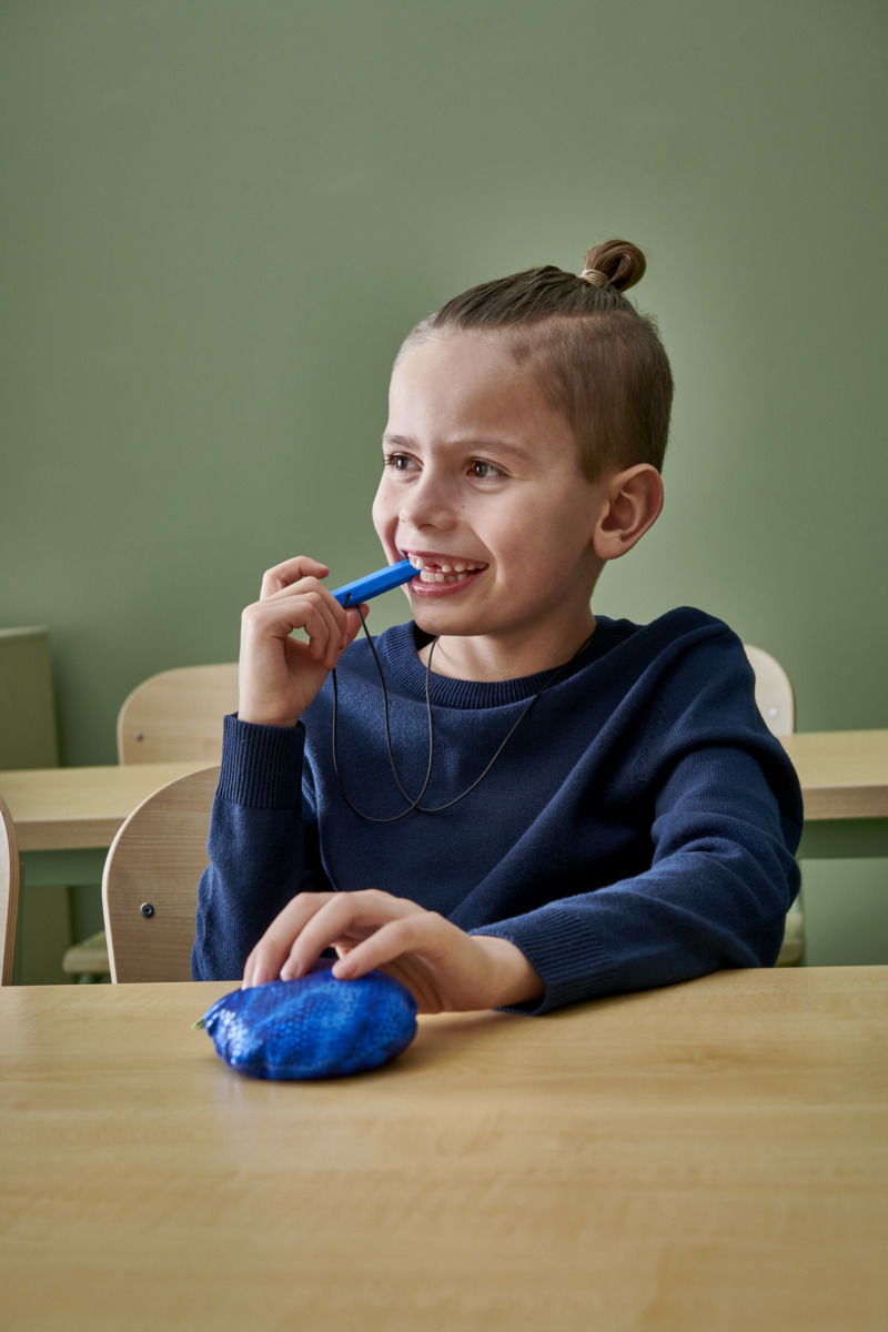 7 st/fp. Ett hjälpmedel för barn för att lättare kunna hålla sig lugna, eller som extra hjälp vid stressiga perioder, och lättare kunna fokusera under läxor och andra aktiviteter. Fungerar också som ett säkert hjälpmedel för att förhindra att barnet biter/tuggar på pennor, fingrar, knogar ect. Godkänd enligt gällande medicinska krav. Material: PU.